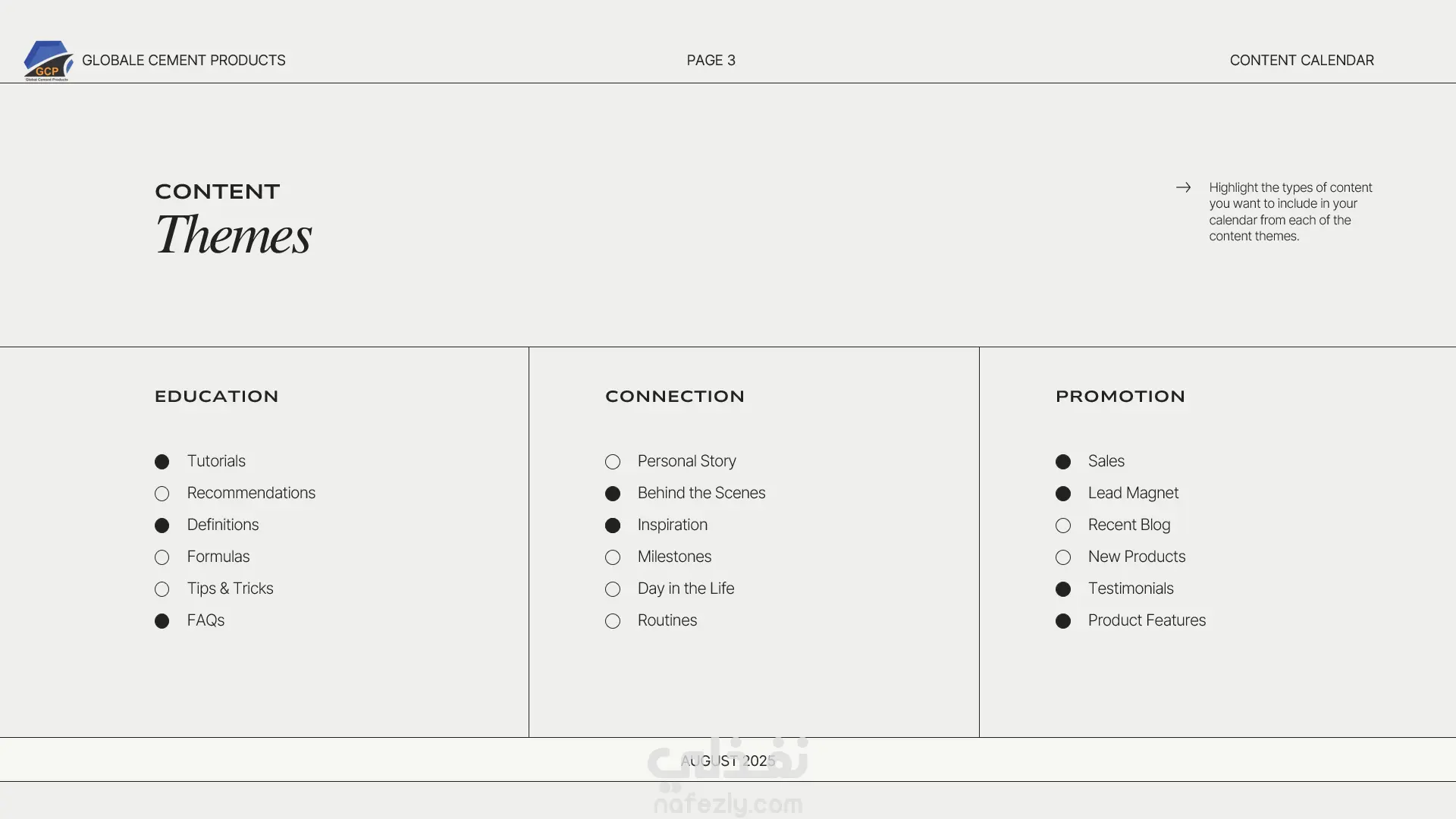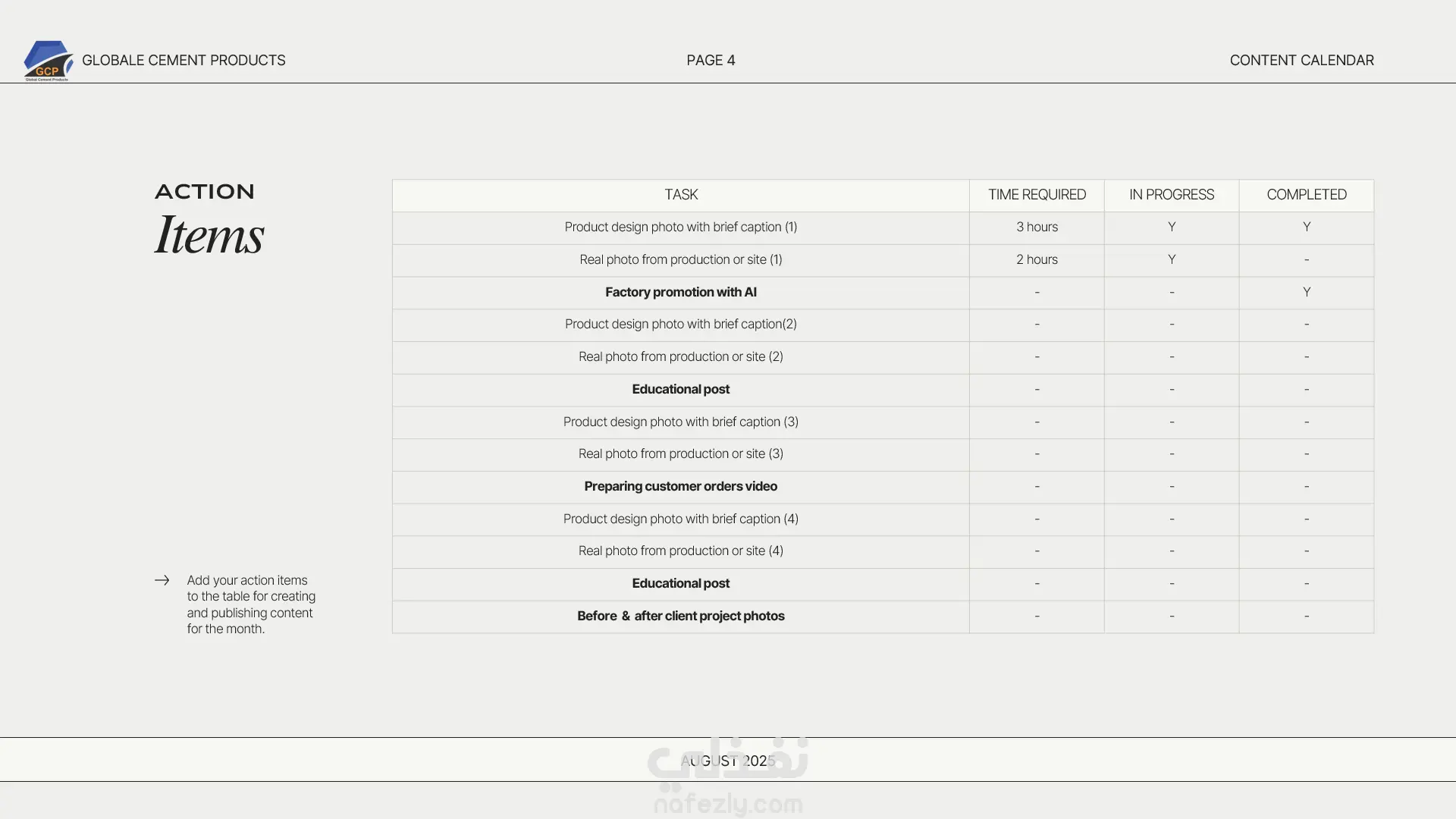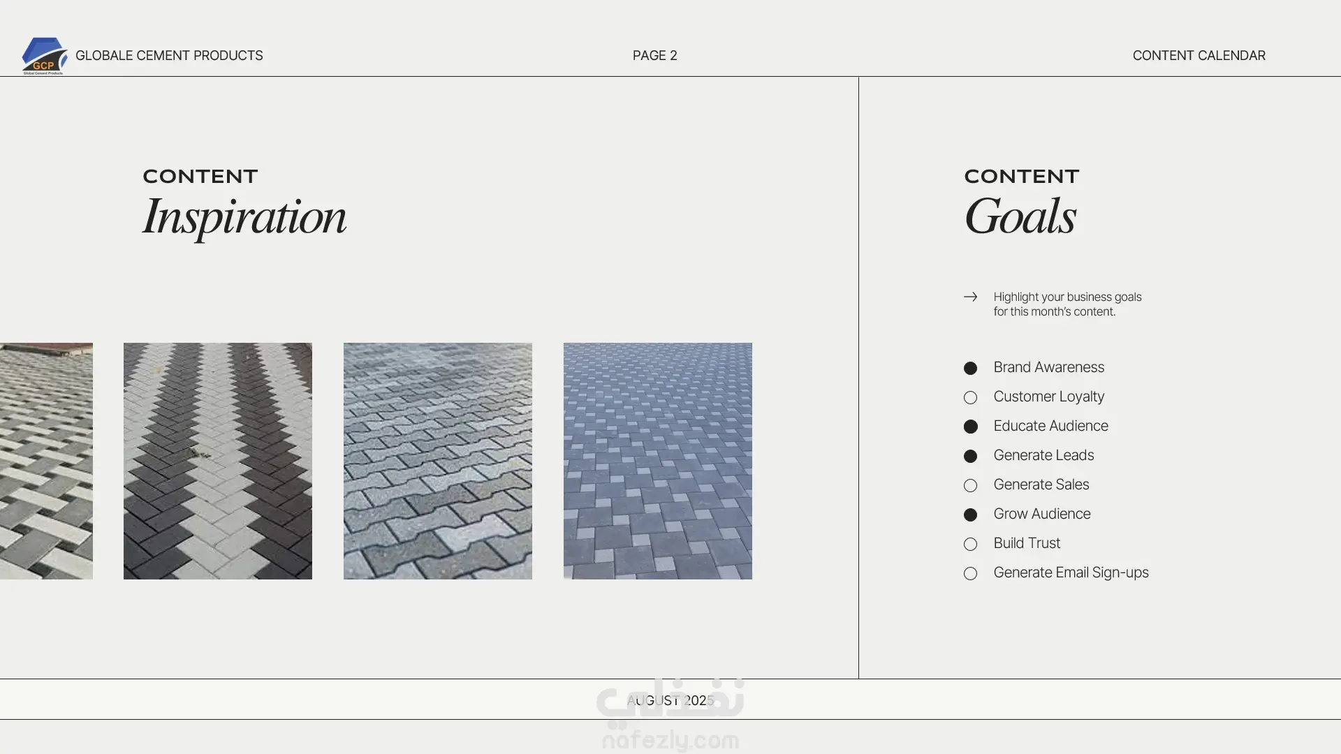 تقويم محتوى شهري لمصنع Globle Cement Product