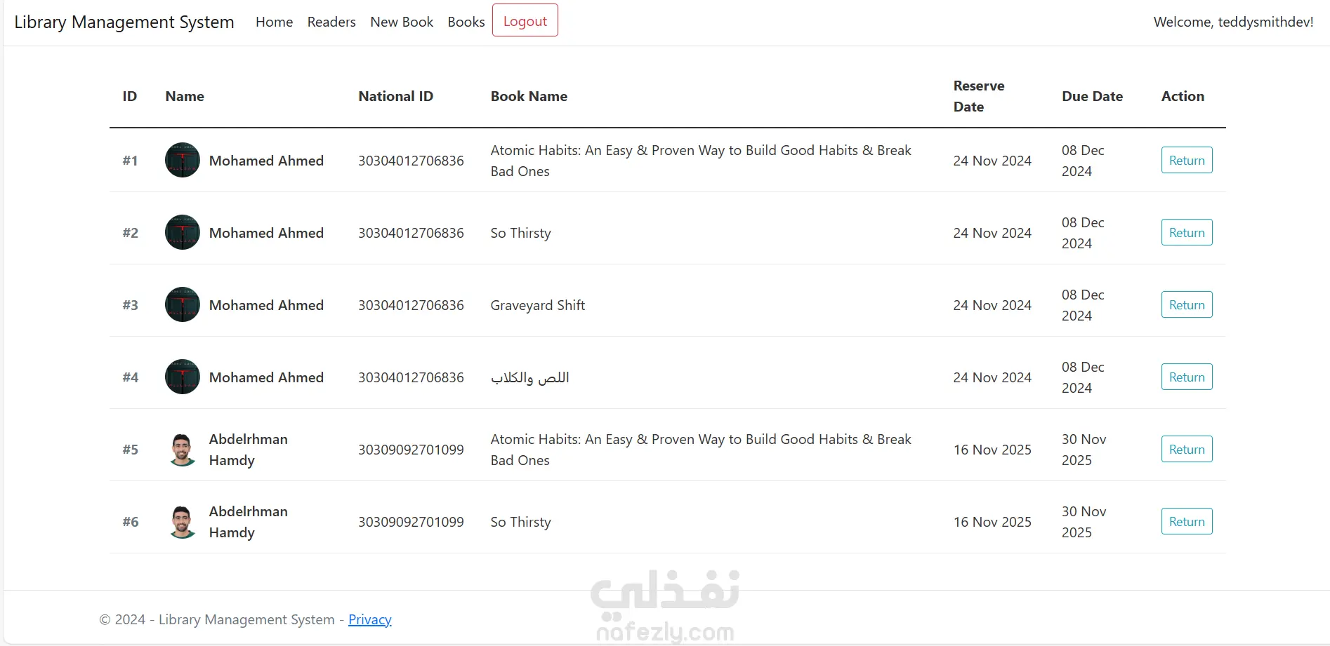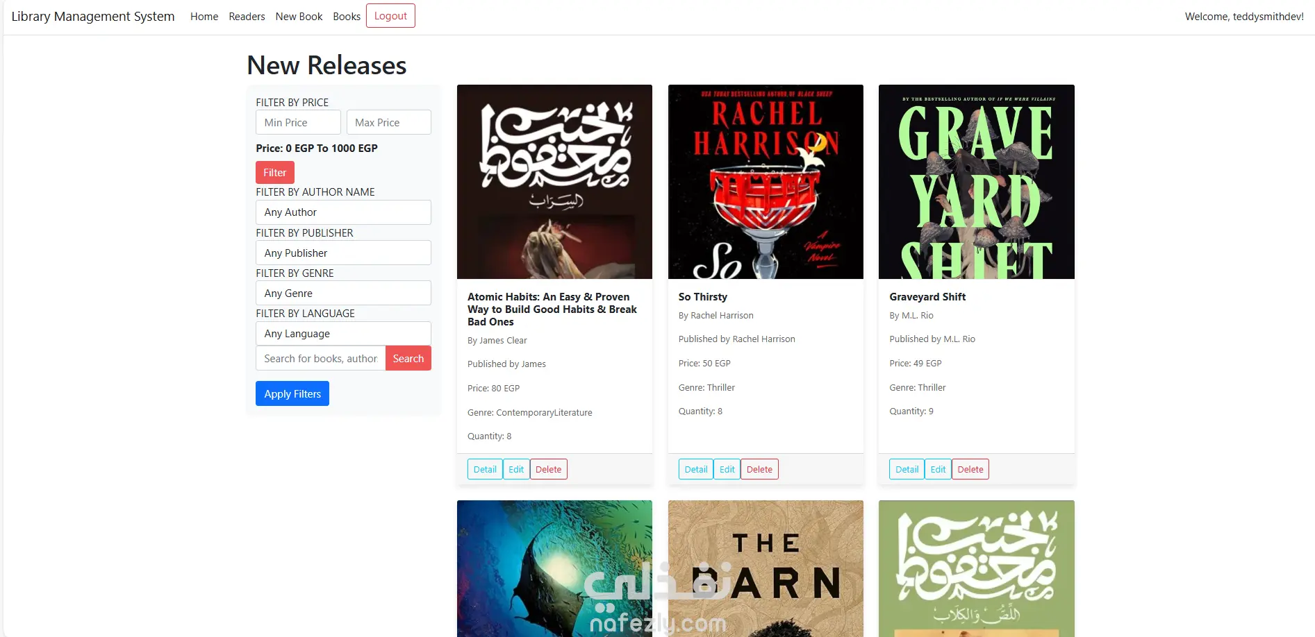 -إدارة الكتب: إضافة، تعديل، حذف، وتحديث بيانات الكتاب.