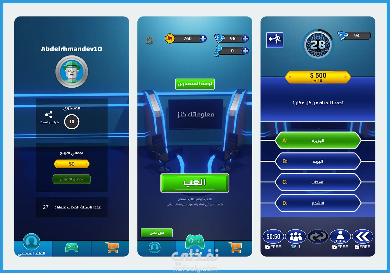 معلوماتك كنز هي لعبة معلومات عامة للاندرويد، اختبر نفسك في 15 سؤال عن كل مجالات الحياة و استعن بوسائل مساعدة مختلفة و كلما تقدمت في اللعبة تزيد صعوبة الاسئلة، اللعبة بها متجر و ملف شخصي خاص باللاعب، اللعبة بها إعلانات و شراء داخل التطبيق.