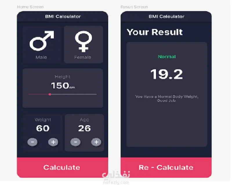 A simple app that calculates the user's Body Mass Index (BMI) using height and weight. It gives instant feedback on the health category (underweight, normal, overweight, etc.) with a clean and colorful interface.