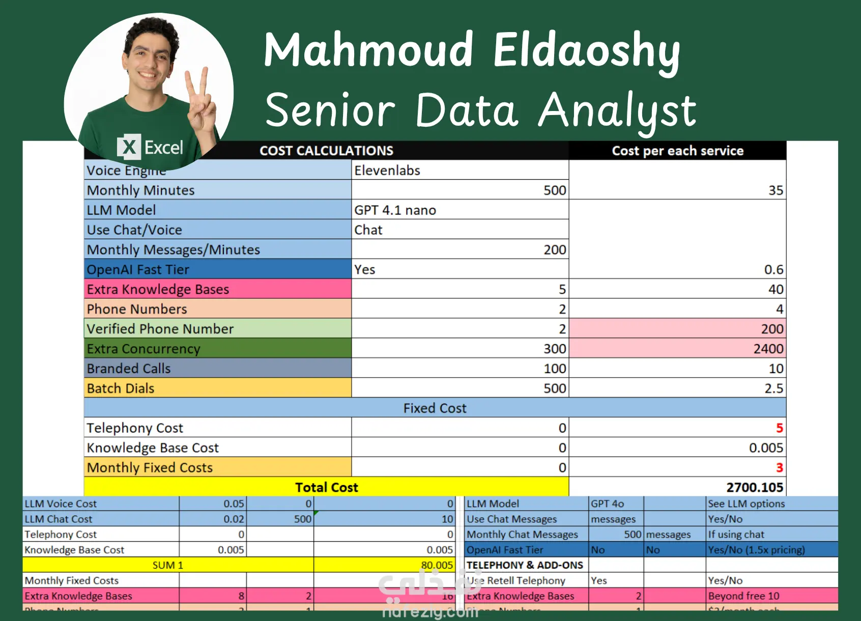 حاسبة تكاليف الأعمال - برنامج أكسيل