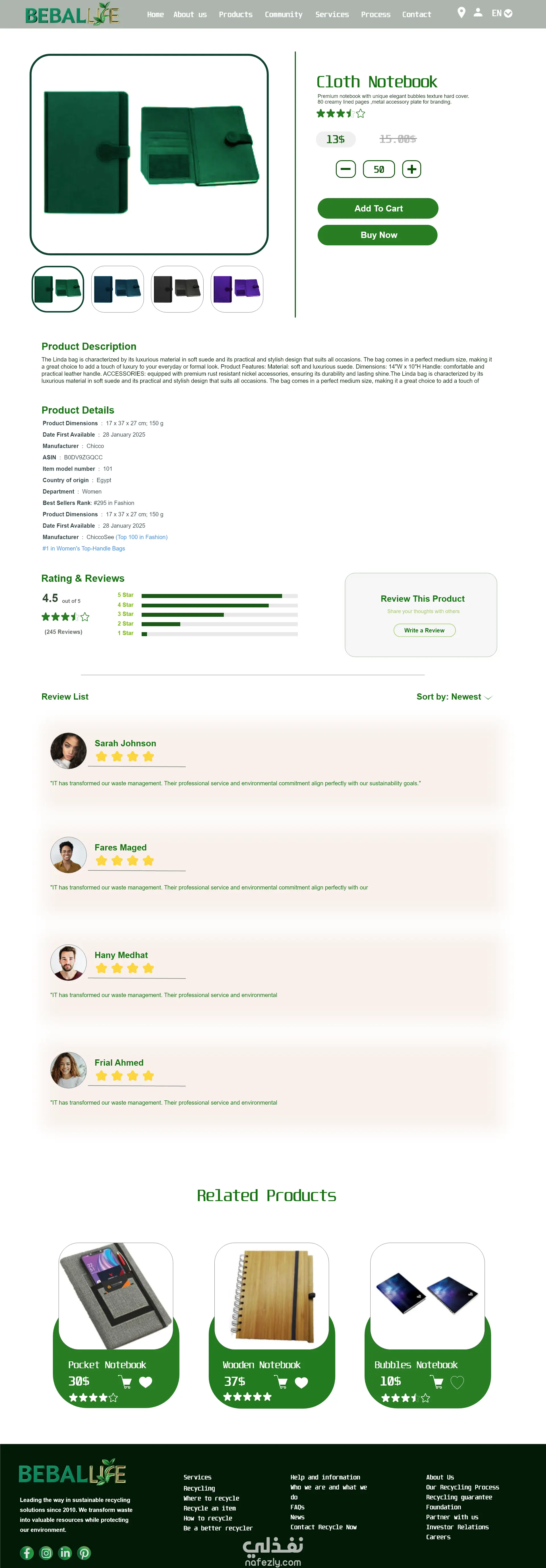 المشروع عبارة عن منصّة متكاملة لإعادة التدوير بتسهل على المستخدمين بيع المواد المعاد تدويرها، وشراء منتجات صديقة للبيئة، وقراءة مقالات، والانضمام للكوميونيتي، وكل ده من خلال تجربة استخدام سلسة وواضحة.