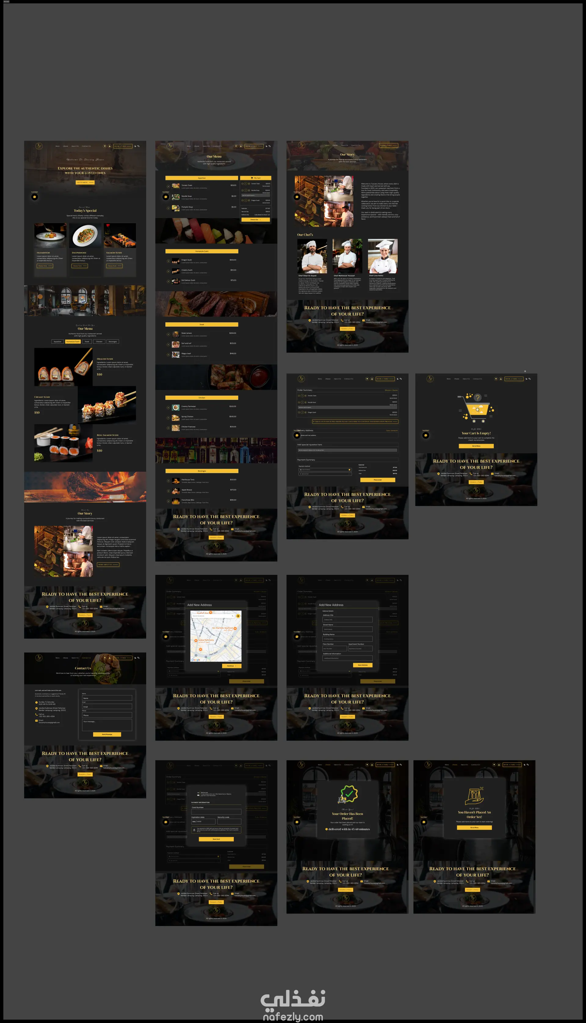 تصميم واجهات المستخدم لجميع صفحات الموقع (Home – Menu – Reservation – Delivery – Dashboards).