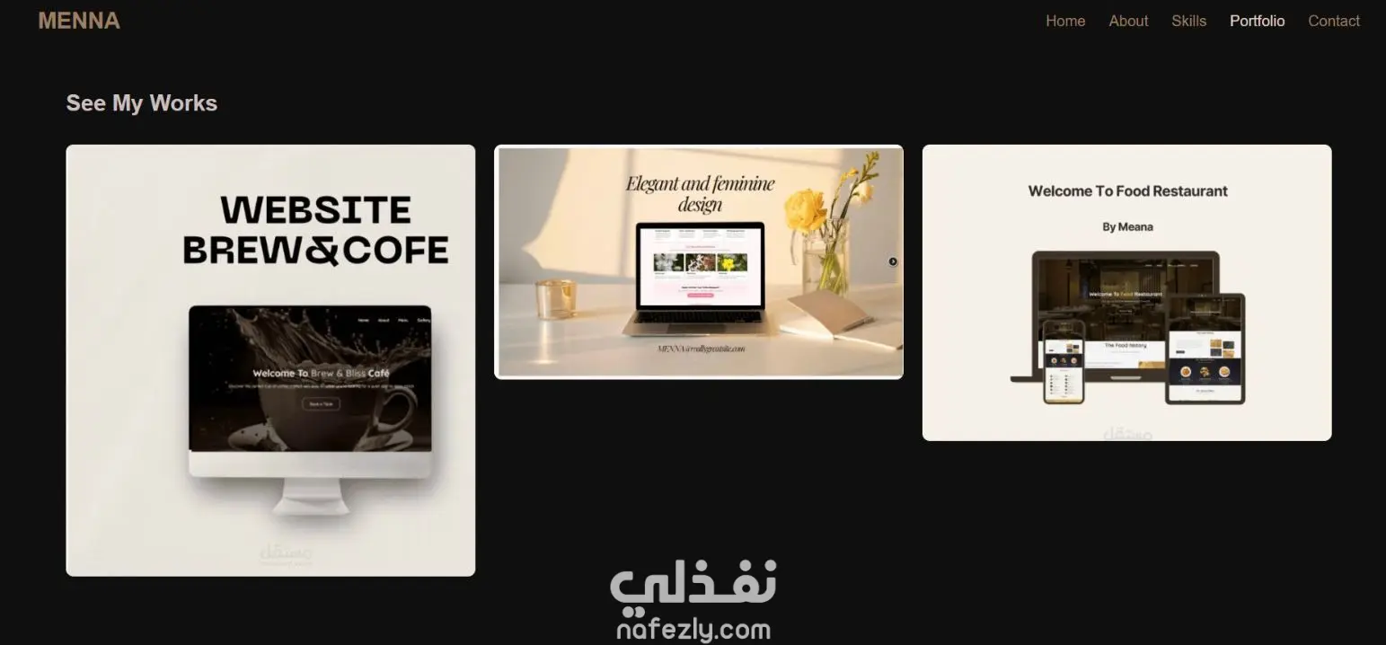 تصميم بورتفوليو مكوّن من 3 صفحات رئيسية:
