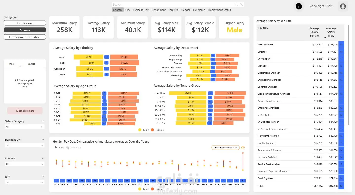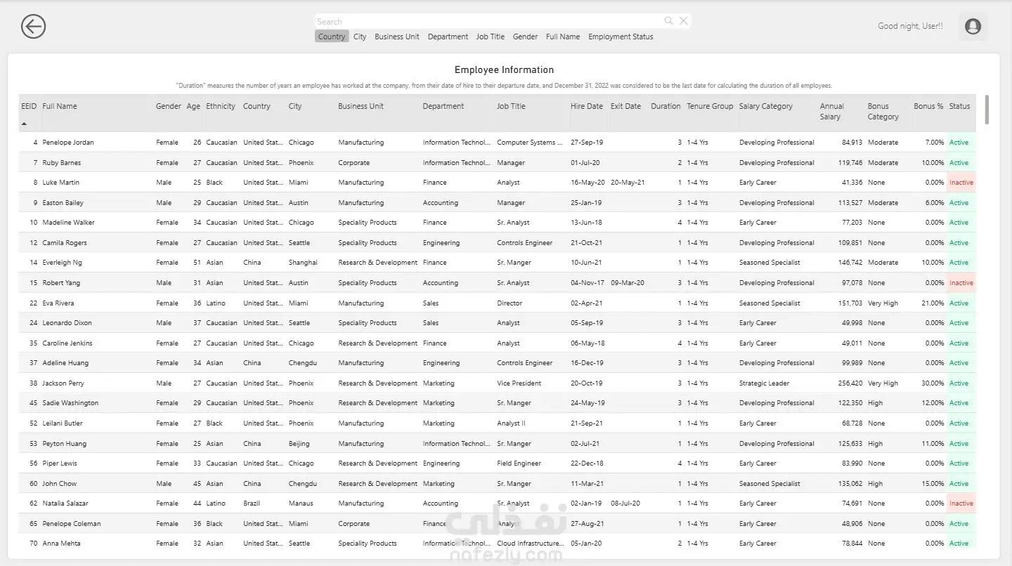 تتميز لوحة المعلومات بما يلي: ✔ نظرة عامة شاملة وفورية على مؤشرات الأداء الرئيسية للموارد البشرية والمالية ✔ تصورات واضحة: الرواتب، الأقدمية، التنوع، معدل دوران الموظفين، الترقيات ✔ تصفح سهل الاستخدام يُمكّن من تحليل سريع وموثوق ✔ دعم فعال لاتخاذ القرارات وتحسين الموارد البشرية دليل على أهمية لوحات معلومات ذكاء الأعمال في الإدارة الحديثة.
