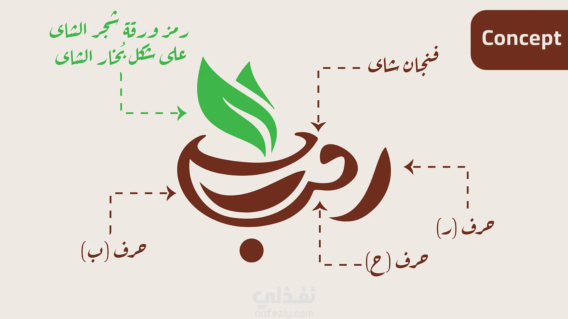 تصميم شعار احترافي لمتجر الشاي (رَحب) دمج بين الخط العربي وهوية الشاي