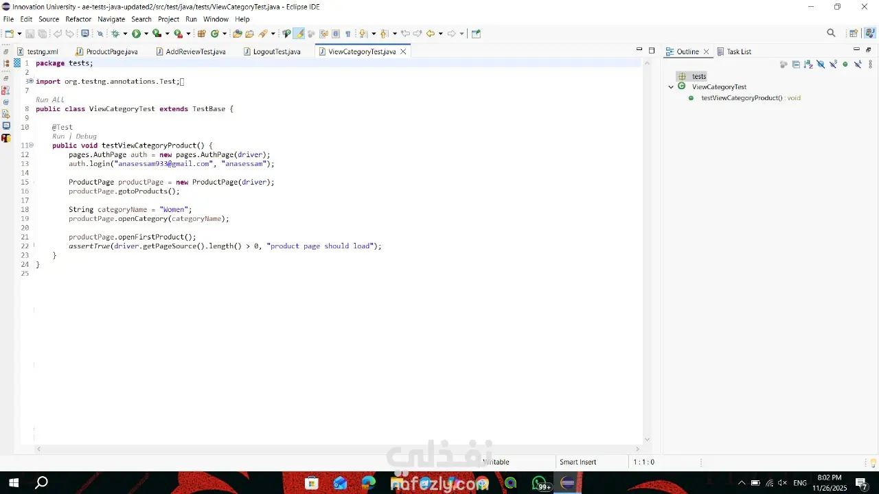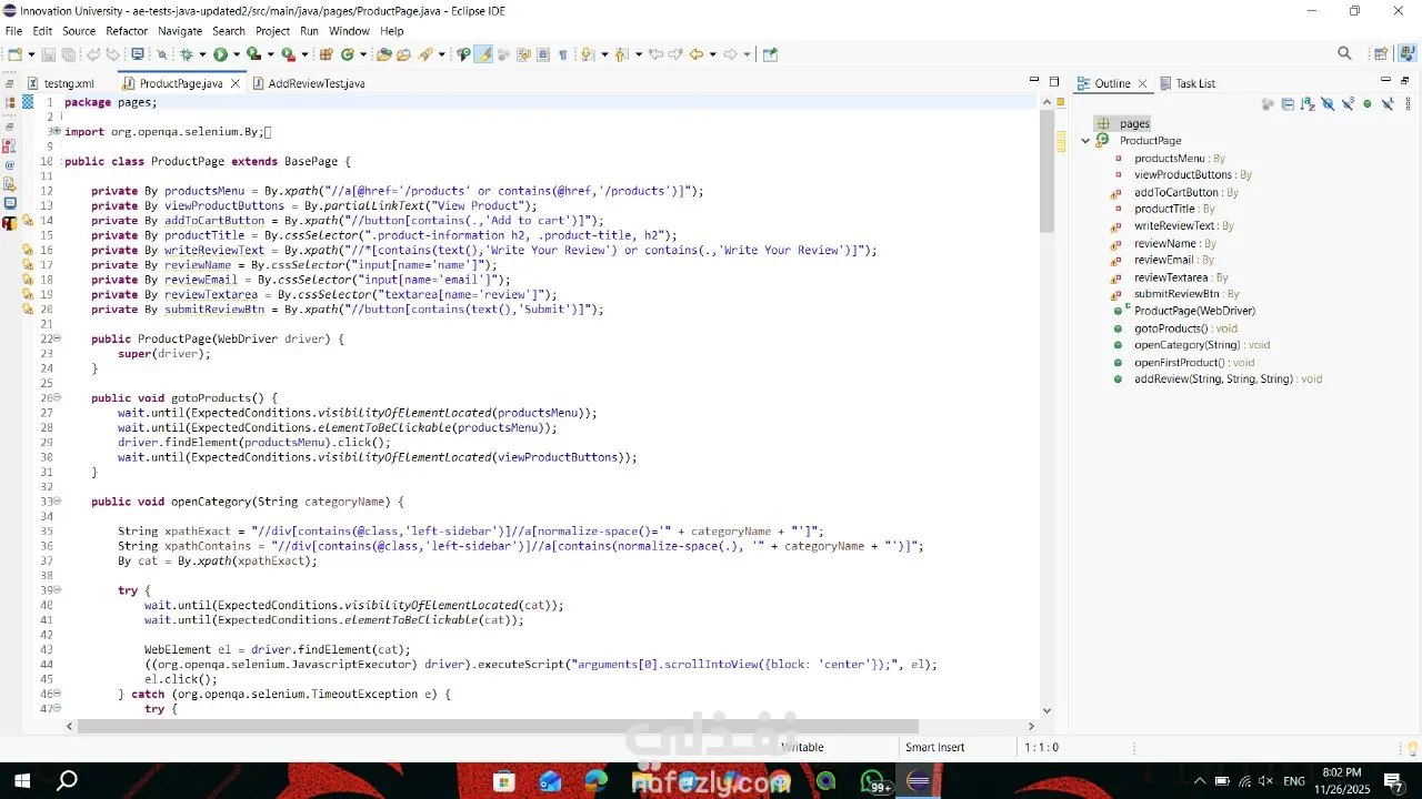 Add Review: اختبار إضافة المراجعات والتحقق من ظهور الرسالة وصحة حفظ البيانات.