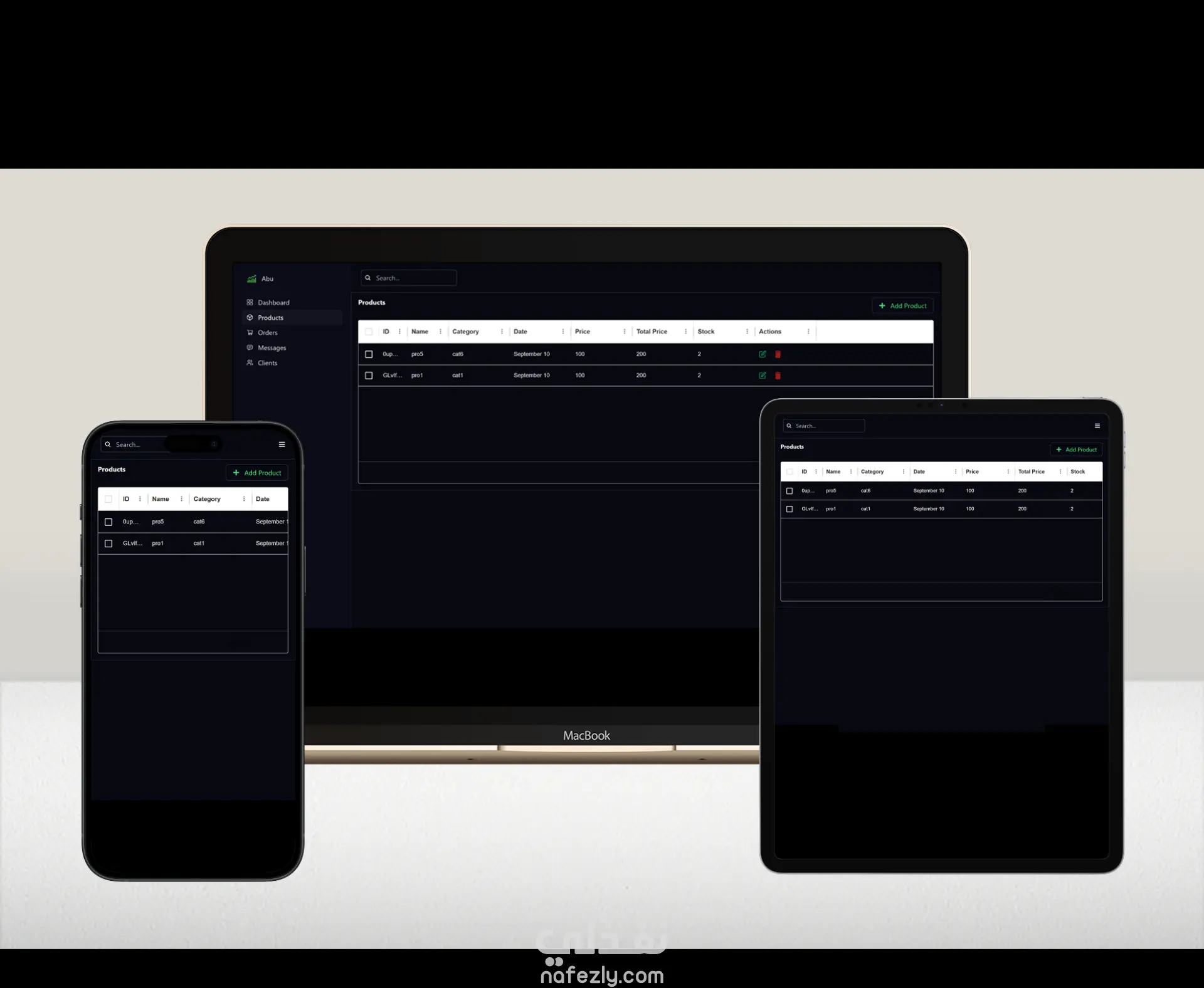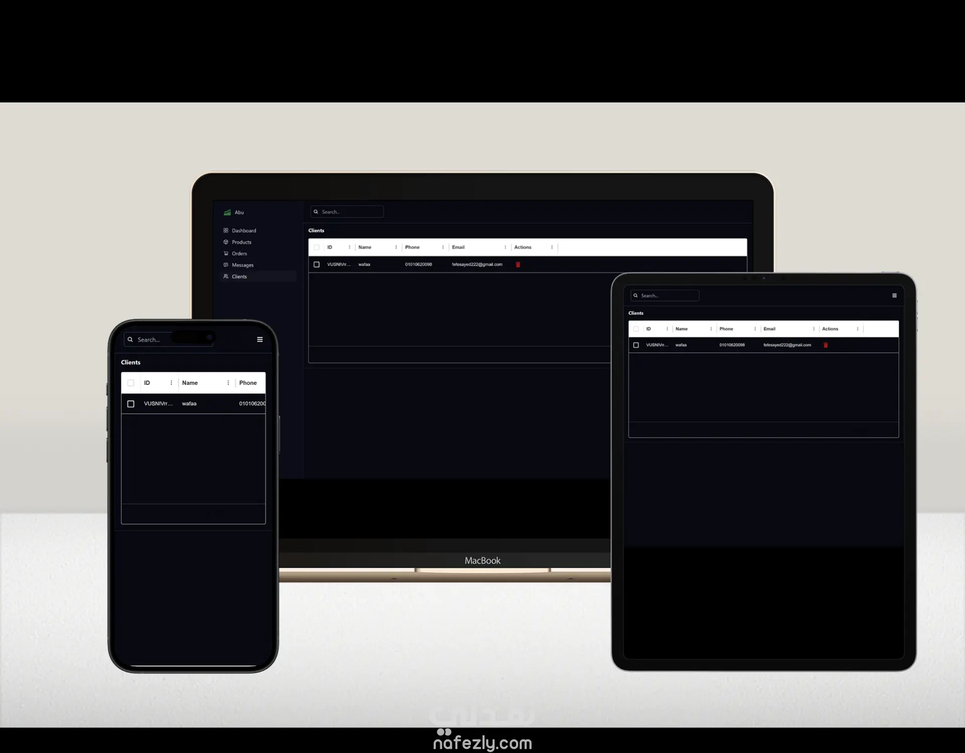 عرض شامل للبيانات: صفحات مخصصة لعرض جميع المنتجات والعملاء والطلبات في جداول تفاعلية.