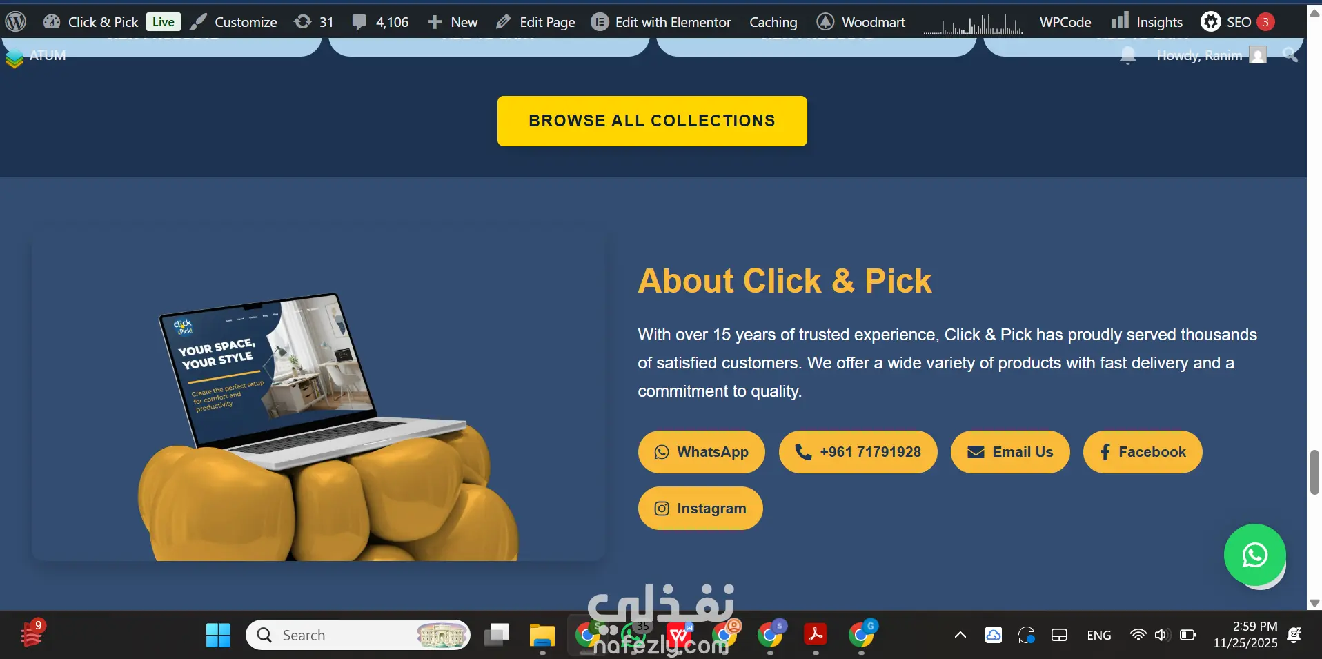 قمت بتصميم وتطوير موقع click&pick باستخدام WordPress وElementor ليعكس هوية.