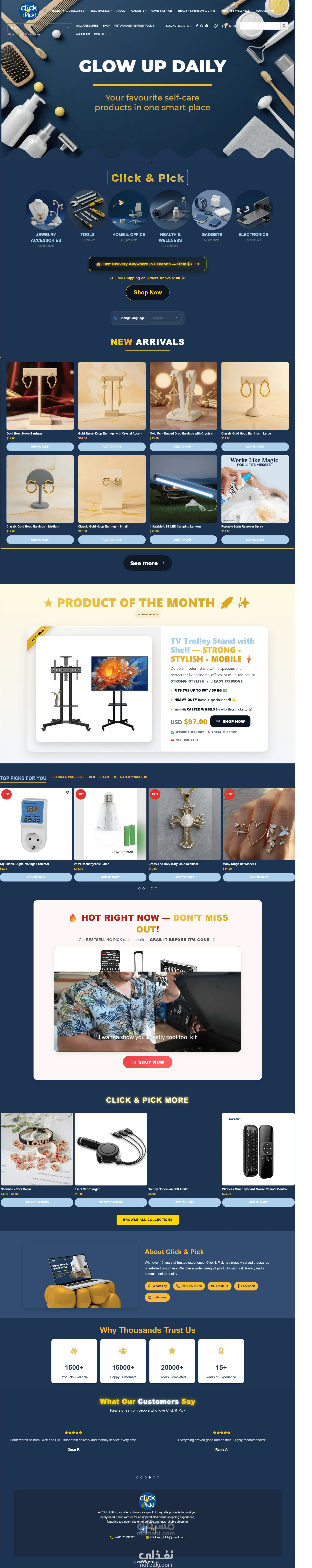 طورت متجرًا إلكترونيًا متكاملًا على WordPress لعلامة Click & Pick المتخصصة في الإكسسوارات والمجوهرات.