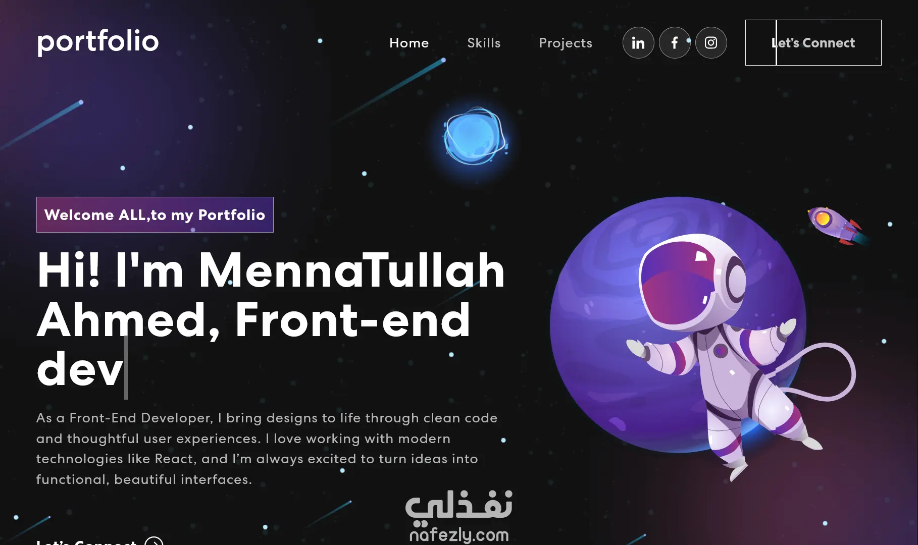 تطوير موقع Portfolio Website تفاعلي باستخدام React مع HTML5, CSS3, Bootstrap لتحقيق تصميم عصري وواجهة مستخدم متجاوبة بالكامل مع جميع الشاشات. React Components تقسيم الموقع إلى وحدات قابلة لإعادة الاستخدام وتسهيل التوسعة المستقبلية تفاعل ديناميكي الصفحة تتجاوب مع تصرفات المستخدم مثل التنقل بين الأقسام وعرض المحتوى تصميم متجاوب تجربة مستخدم ممتازة على الكمبيوتر، التابلت، والهاتف.مناسب لعرض الأعمال الشخصية، الشركات الصغيرة، صفحات الهبوط، والمتاجر الإلكترونية التي تبحث عن واجهة حديثة وتفاعلية