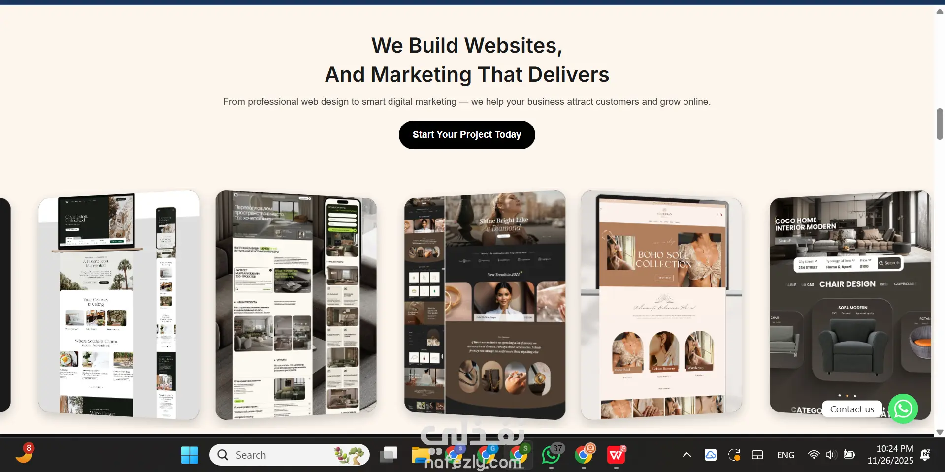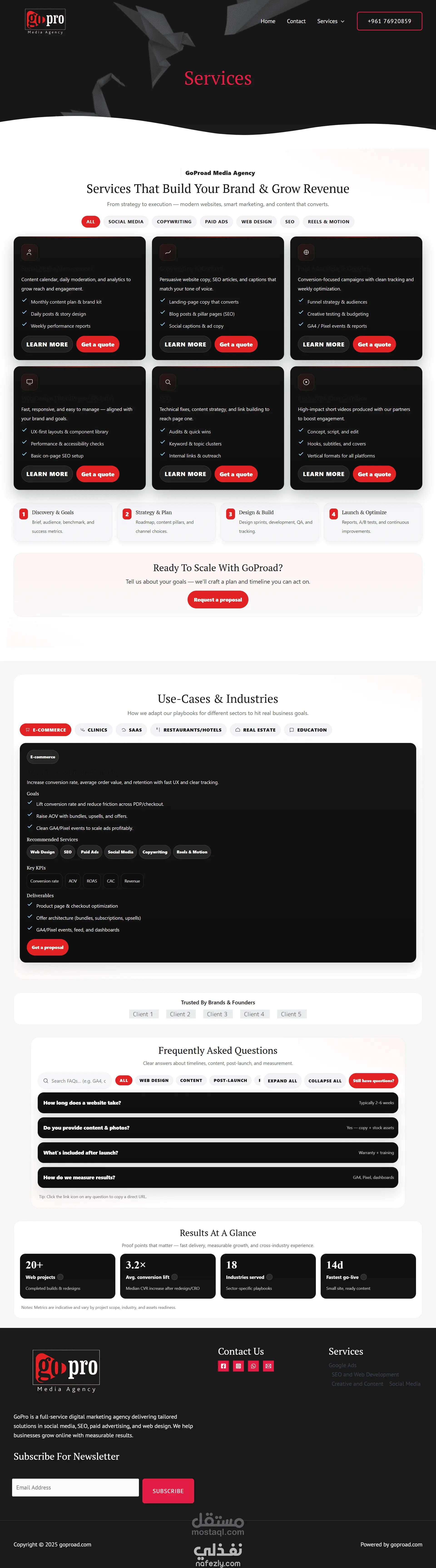 قمت بتصميم وتطوير موقع GoPro باستخدام WordPress وElementor ليعكس هوية وكالة تسويق رقمية احترافية. ركزت على إنشاء واجهة مستخدم سلسة ومتصلة بالأقسام الرئيسية (الخدمات – الأعمال – التواصل)، مع تحسين سرعة التحميل وتجربة المستخدم على الأجهزة المختلفة. كما تمت مراعاة معايير الـSEO وإضافة نماذج تفاعلية لطلب العروض. التقنيات: WordPress, Elementor, HTML, CSS, JavaScript, SEO Optimization. شمل العمل إعداد القالب، تنظيم صفحات المجموعات، تحسين عرض المنتجات، وتهيئة الموقع لمحركات البحث. كما تم تصميم واجهات عصرية متوافقة مع الهوية البصرية للعلامة التجارية. التقنيات: WordPress, WooCommerce, Elementor, SEO, Responsive Design. التقنيات: WordPress, Elementor, UI/UX Design, On-Page SEO.