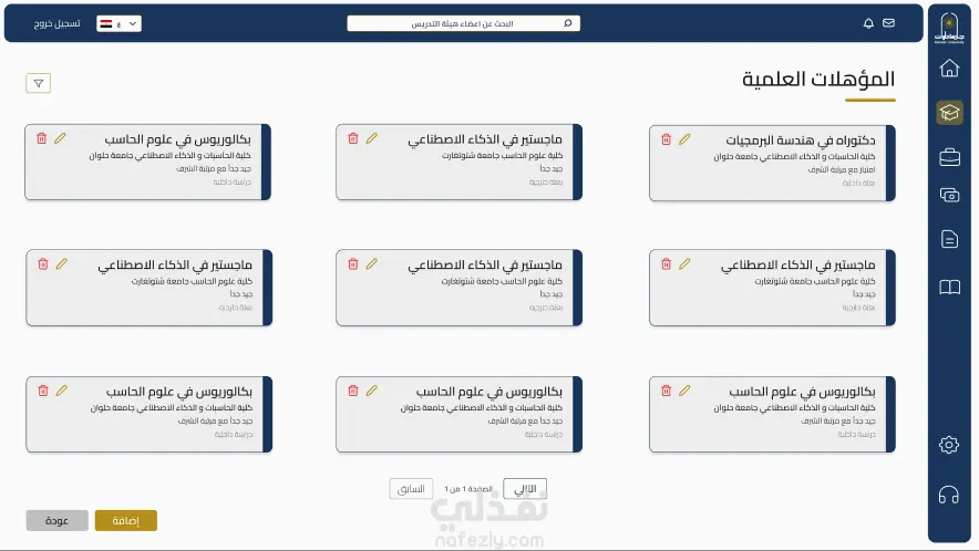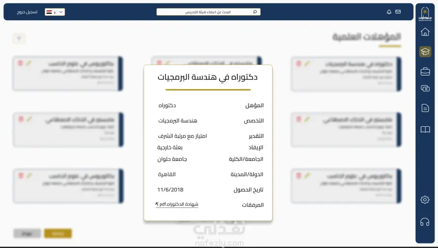 قمت بتطوير بوابة إلكترونية شاملة لأعضاء هيئة التدريس بجامعة حلوان، تشمل إدارة البيانات الأكاديمية والوظيفية، مع لوحة تحكم كاملة وصلاحيات متعددة.