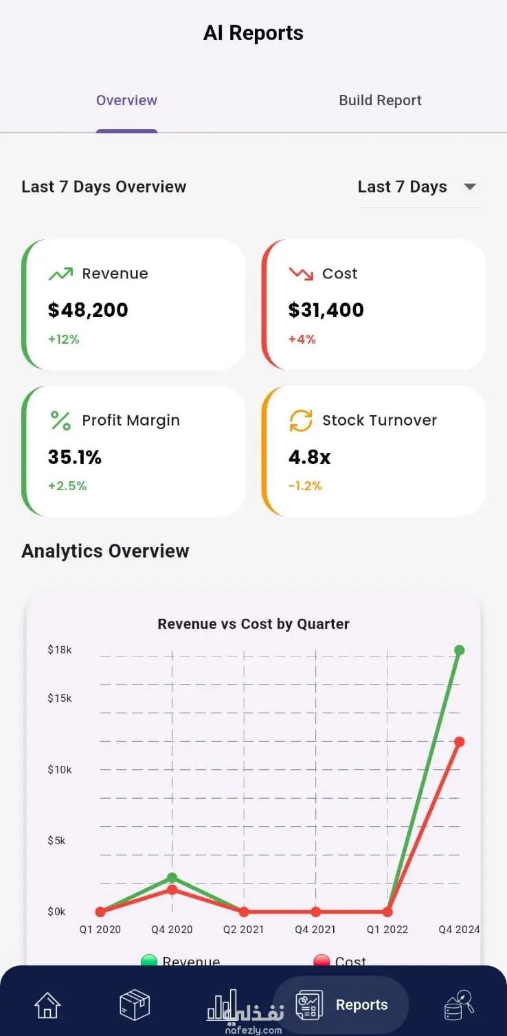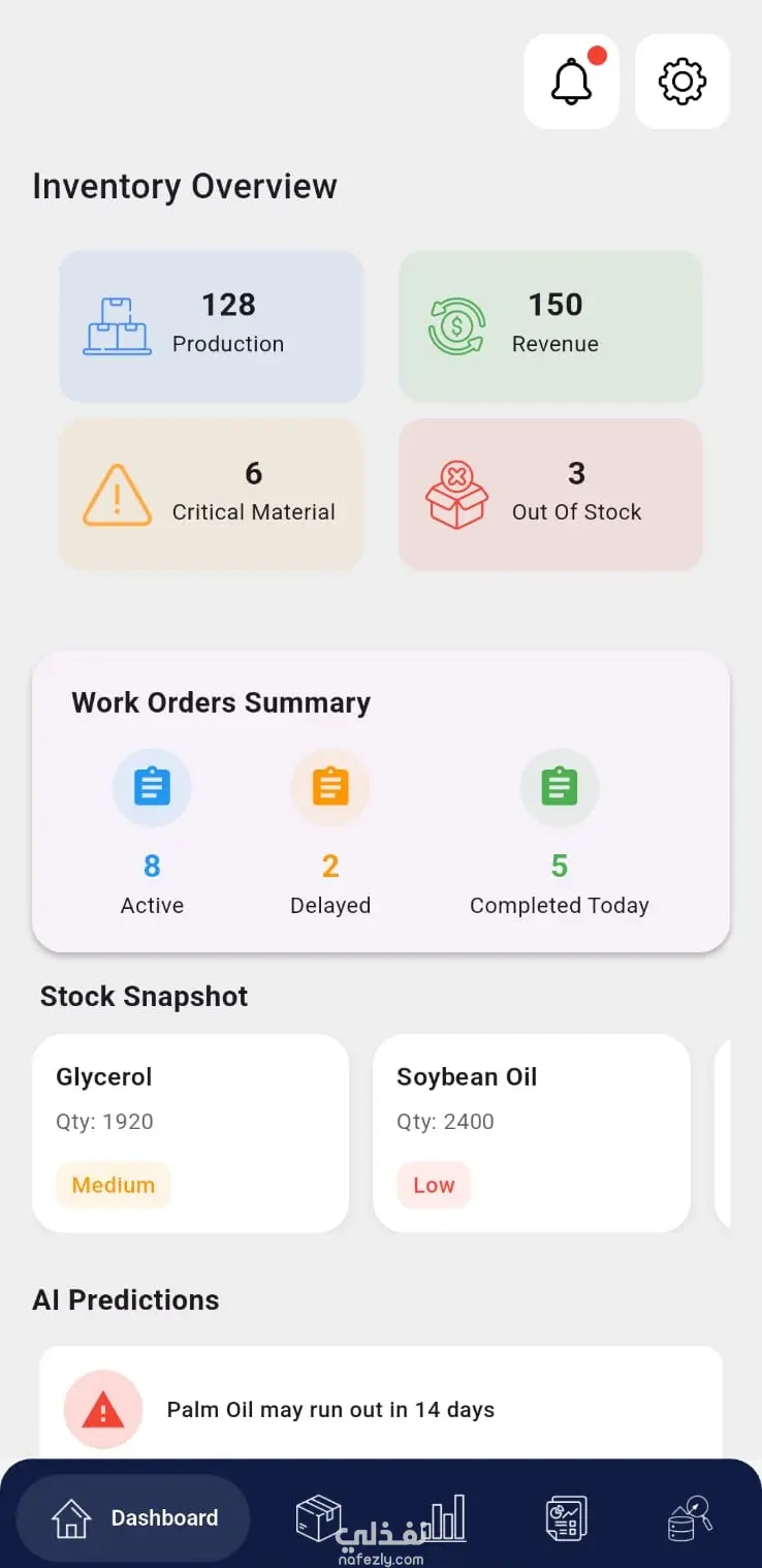 تصميم واجهة موبايل ابليكيشن لمتابعة حالة المخزون