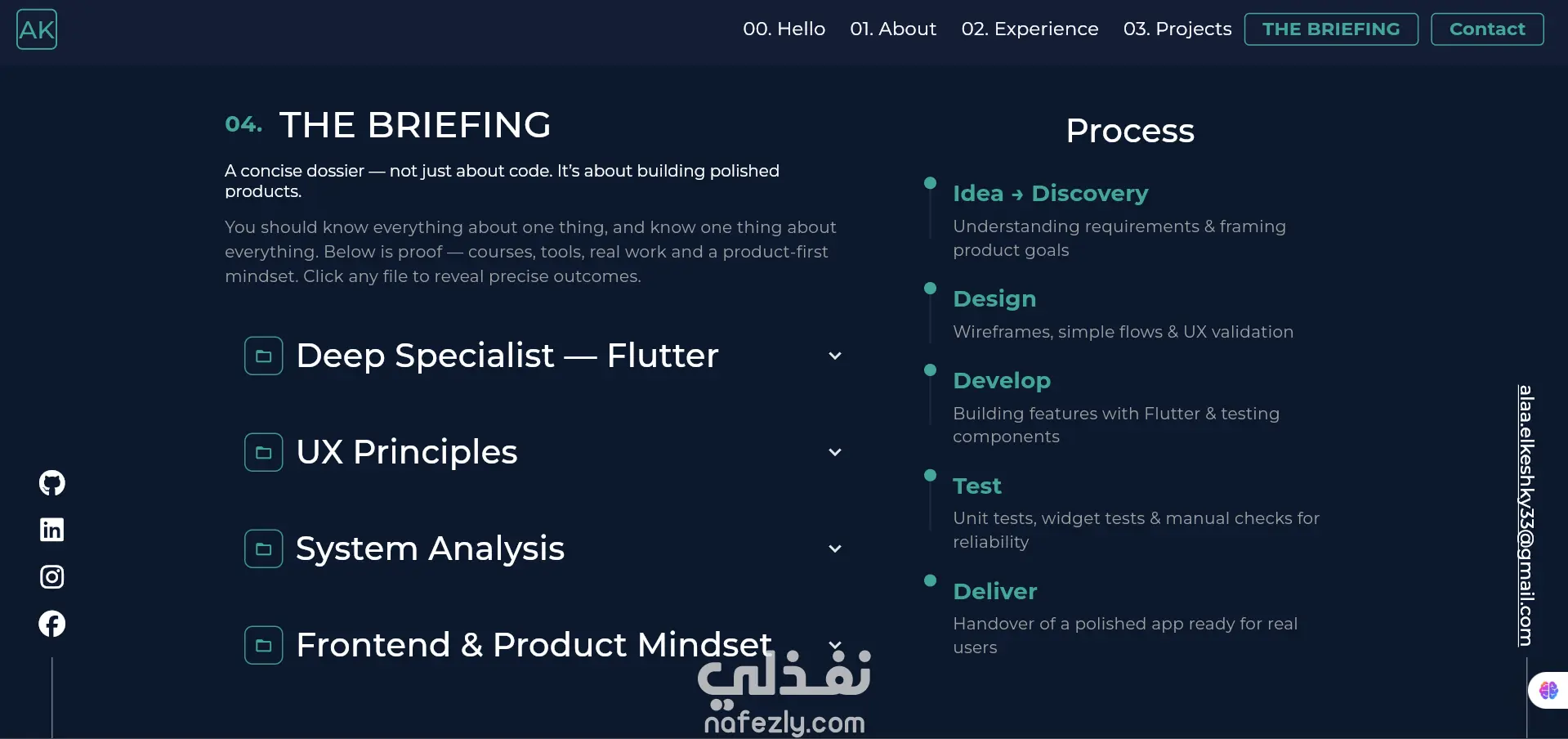 قمت بتصميم وبناء بورتفوليو احترافي يعرض مهاراتي كمطور Flutter ومصمم UI/UX. ركّزت فيه على تجربة مستخدم سلسة، تصميم حديث، وتنظيم واضح للمعلومات.