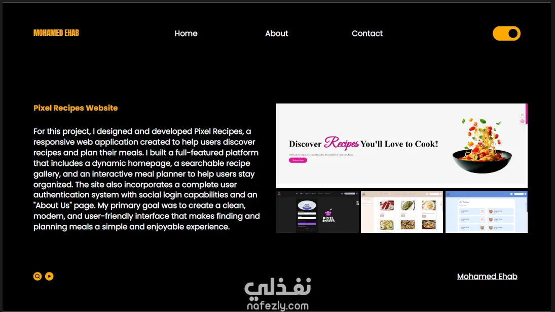 For this project, I designed and developed Pixel Recipes, a responsive web application created to help users discover recipes and plan their meals. I built a full-featured platform that includes a dynamic homepage, a searchable recipe gallery, and an interactive meal planner to help users stay organized. The site also incorporates a complete user authentication system with social login capabilities.