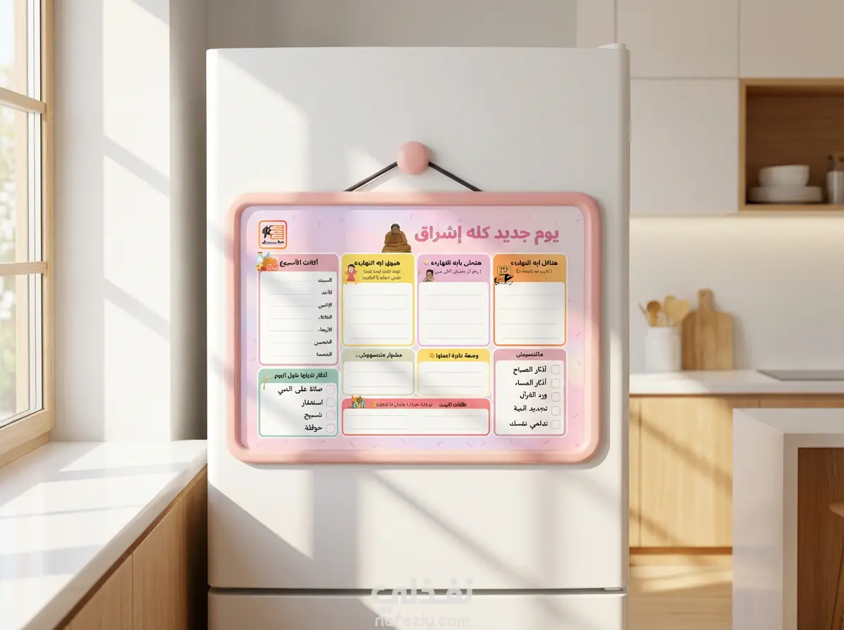 يوم جديد كلّه إشراق. تصميم خاص للأمهات وربات البيوت لملء يومهم بالنشاط والنظام والمتعة. صممته بحبّ علشان يبقى رفيق عملي وعاطفي لكل أم أو ربة منزل أرهقت من فوضى المهام وحابة تملى يومها سعادة وحماس وهي بتدير بيتها. ما يميز التصميم: ألوان ناعمة ومرحة تناسب نفسيتك وحماستك. رسومات وعناوين مضحكة (مثل: “هناكل إيه النهارده؟” و“هنروح فين النهارده؟”) قسم خاص لتذكيركِ بأهم شيء: (استغفار، تسبيح، حوقلة) مساحات مخصصة لتنظيم الأكل، المشوار، الواجبات، وحتى “وصفة عايزة أعملها” قائمة “ماتنسيش” بتفصيل يومي من الصباح للمساء، ومن القرآن للعناية بنفسك كل زاوية في التصميم صُممت بتفصيل علشان تخلّيكِ تحسي إنكِ مُقدّرة، مُنظّمة، ومُلهمة — حتى لو كان اليوم ممل أو متعب! لأنك تستحقي نظام يفهمك… ويدعمك… ويبتسم معك ️