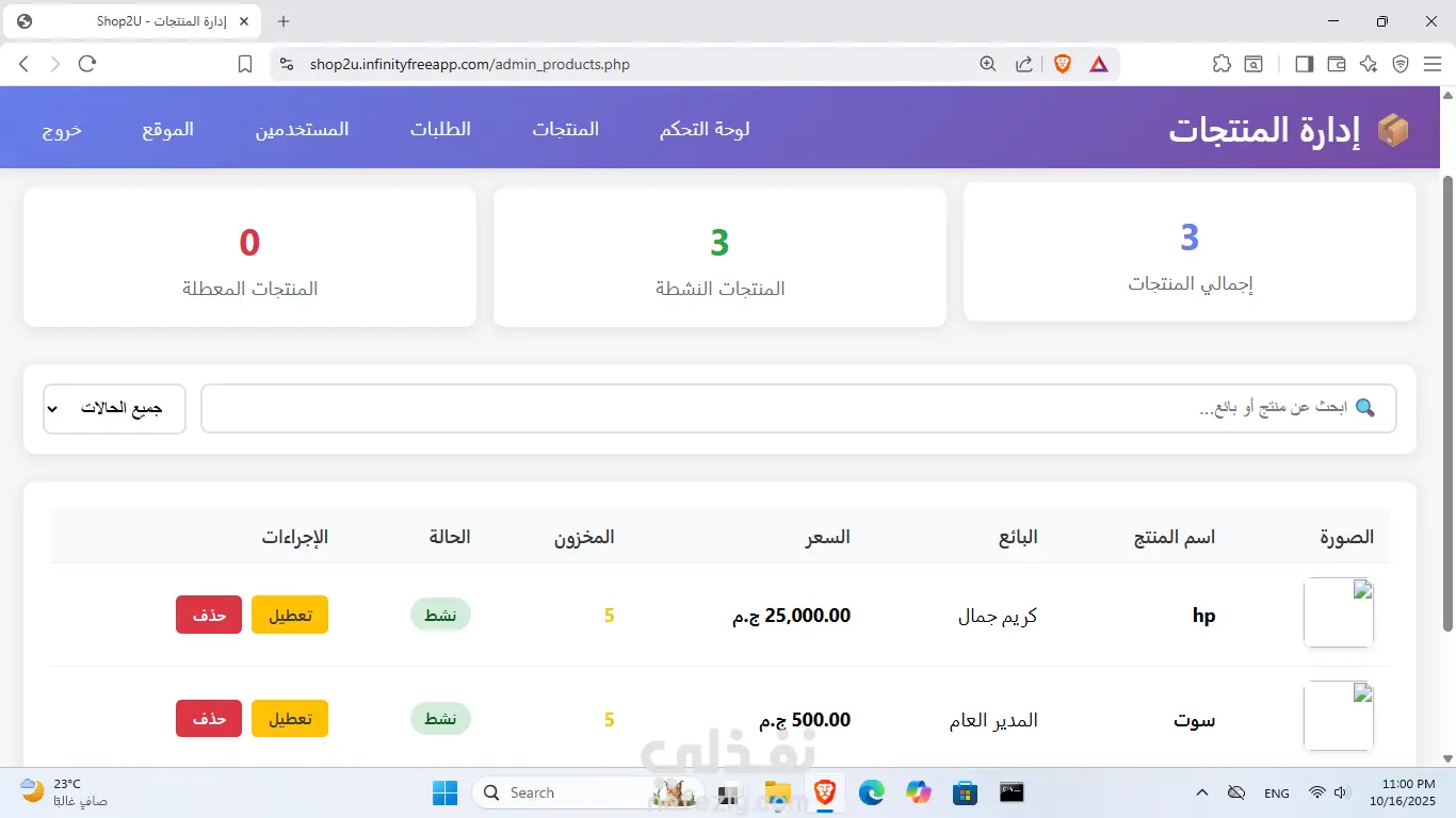 🛒 إدارة المنتجات: رفع منتجات جديدة، تعديلها، حذفها، التحكم في المخزون.