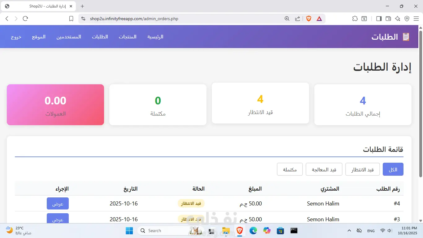 📦 نظام إدارة طلبات كامل من لحظة الشراء حتى الاستلام.