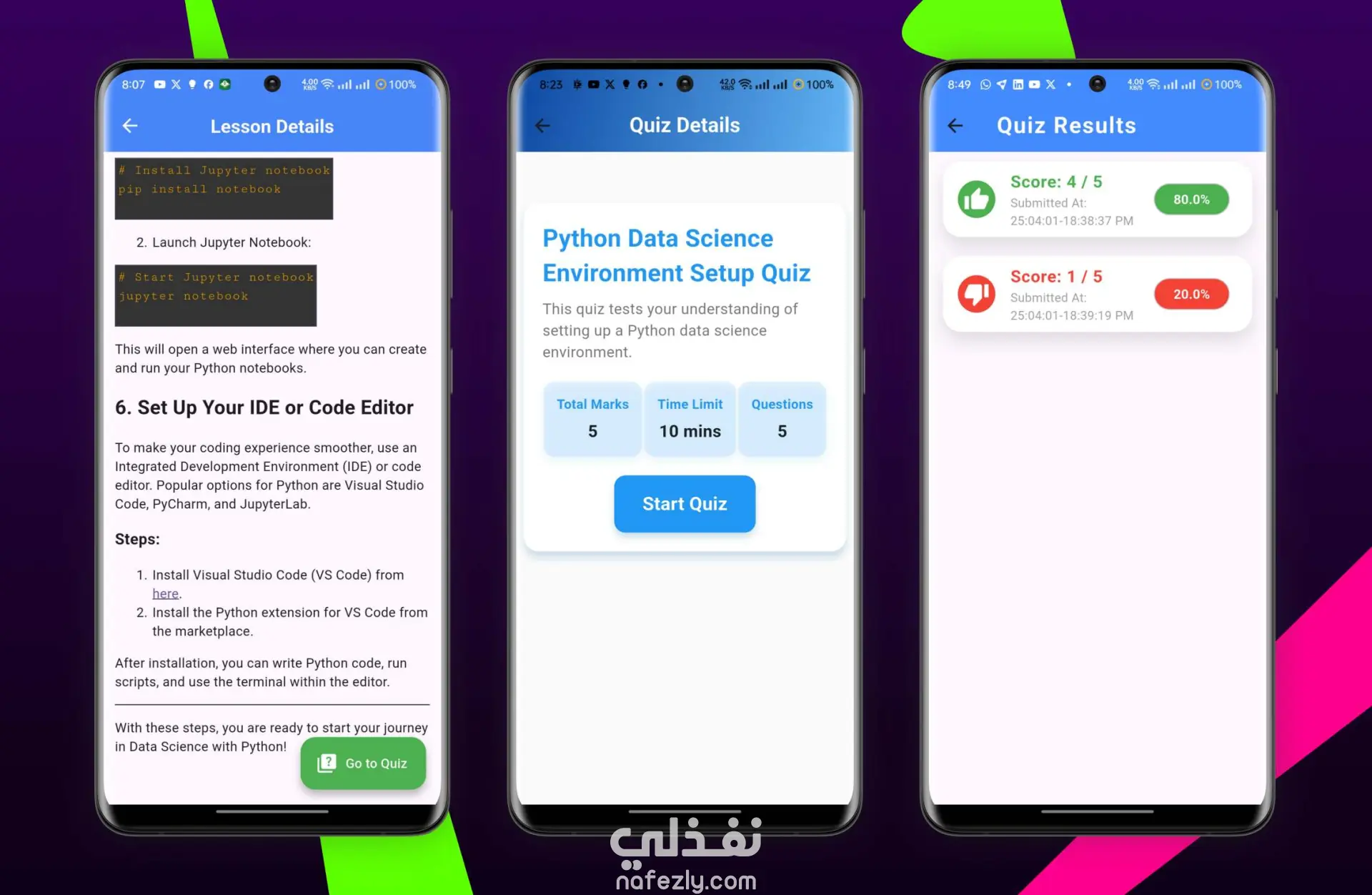 منصة شاملة لتعلّم البرمجة تم تطويرها باستخدام Flutter لتوفير توافق كامل عبر الأنظمة المختلفة، مع FastAPI للواجهة الخلفية، وPostgreSQL كقاعدة بيانات. تم تصميم وتطوير الواجهة الخلفية وقواعد البيانات بالكامل يدويًا، مما يوفّر تحكّمًا كاملاً ودقيقًا في النظام.