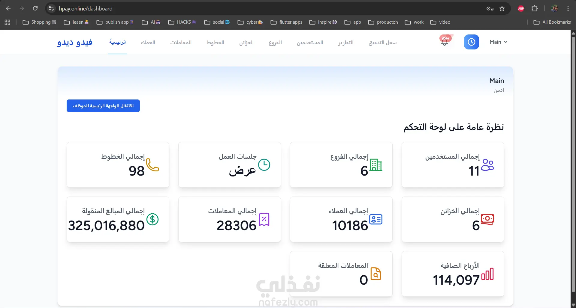 نظام متكامل لإدارة العمليات المالية تم تطويره باستخدام Laravel لمعالجة المعاملات، والفروع، والمستخدمين، والعملاء بشكل آمن وفعّال.