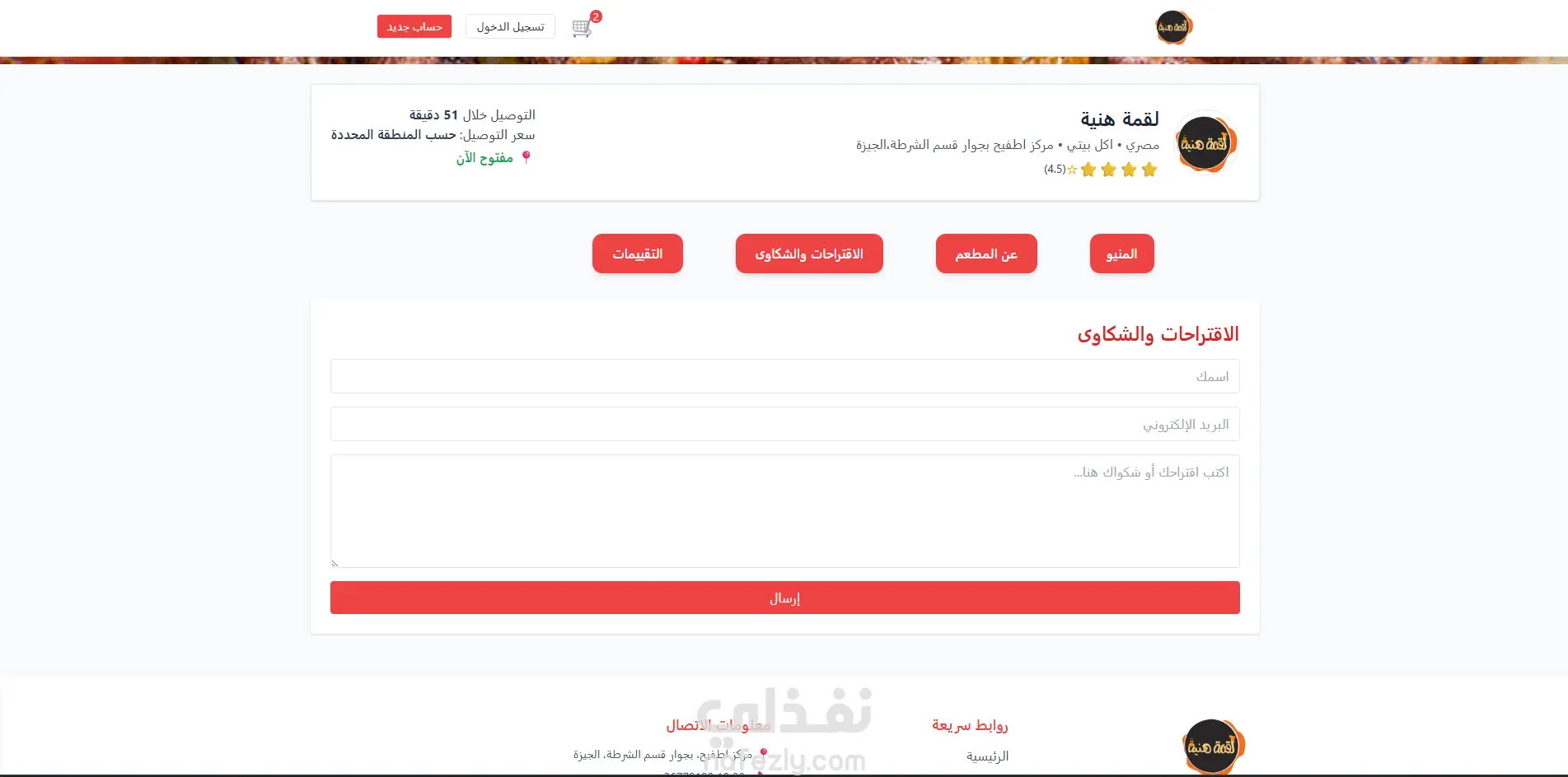 صفحة اقتراحات وشكاوى لتلقي ملاحظات العملاء.