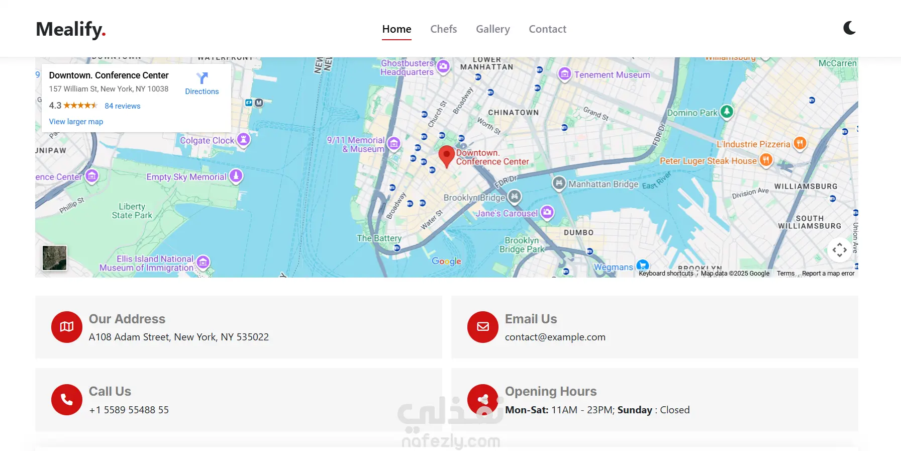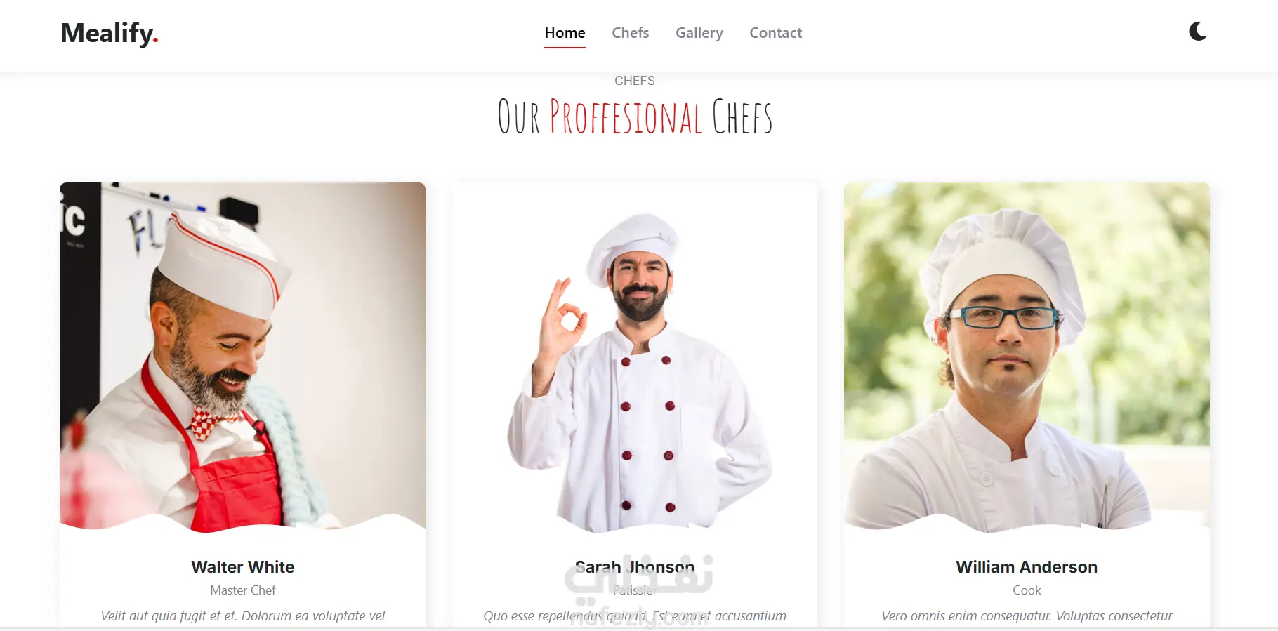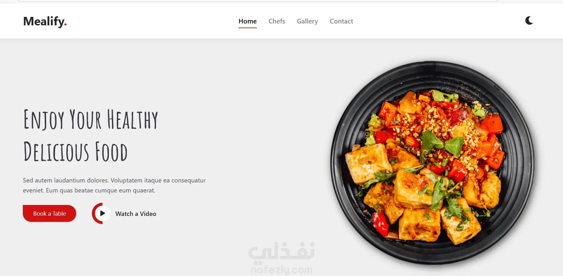 قمت بتصميم وتطوير موقع ويب احترافي لمطعم تحت اسم Mealify، وهو عبارة عن صفحة هبوط (Landing Page) تعرّف بخدمات المطعم وقائمة الطعام بطريقة جذابة وسهلة التصفح.