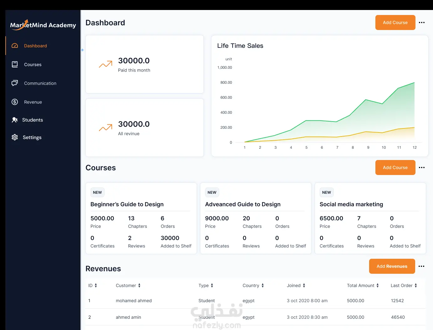 LMS (Learning management system) for online academy ,نظام اداره التعليم لاكادميه تعليم رقميه يساعد الاكادميه في اداره الكورسات والدوارات واداره الطلاب والدخل والشراء
