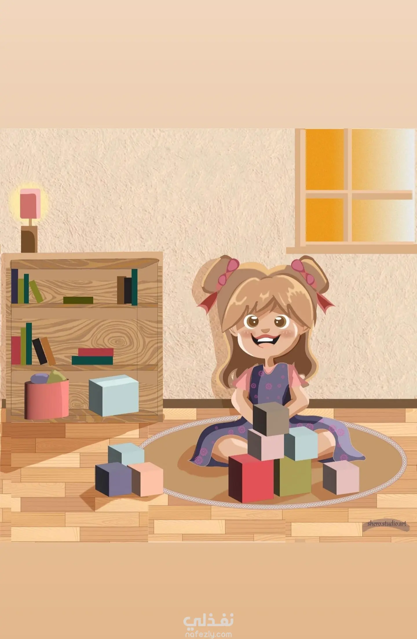 مشهد من قصة قصيرة شاركت بها في مسابقة فنية، يعبّر عن لحظة طفولية مليئة بالخيال والبراءة.