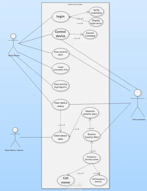 عمل UML Diagrams للمشروع عن المنازل الذكية
