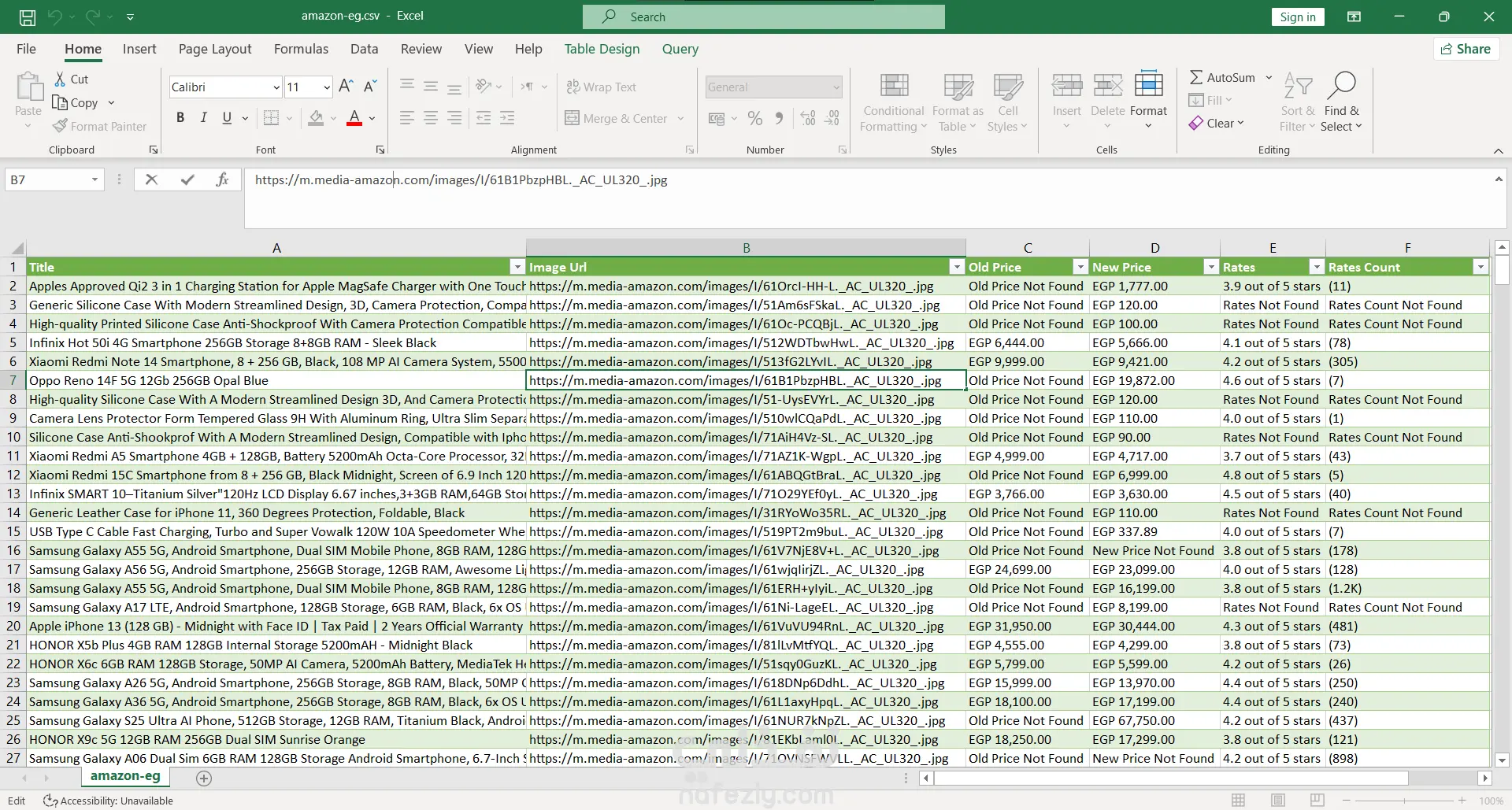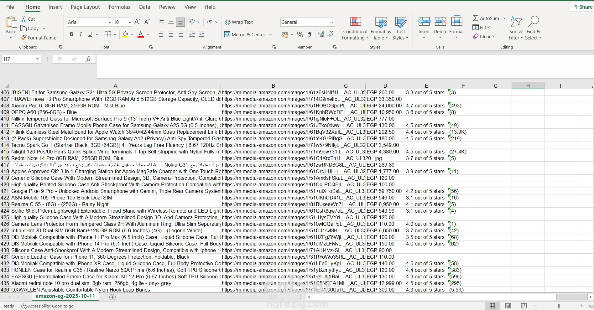- بيانات المنتجات من المتاجر الإلكترونية (الاسم – السعر – الصورة – التقييم – الرابط) يمكنني ايضا استخراج الصور كملفات في حالة الطلب.