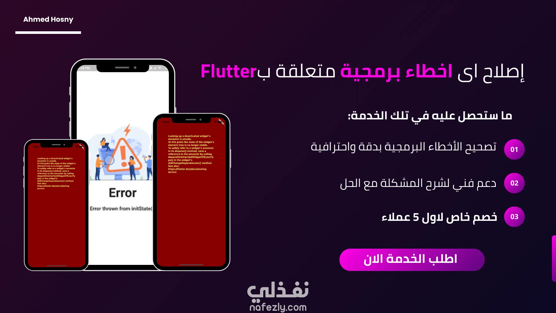 خبرة عملية واسعة في تطوير وتصحيح تطبيقات Flutter.
