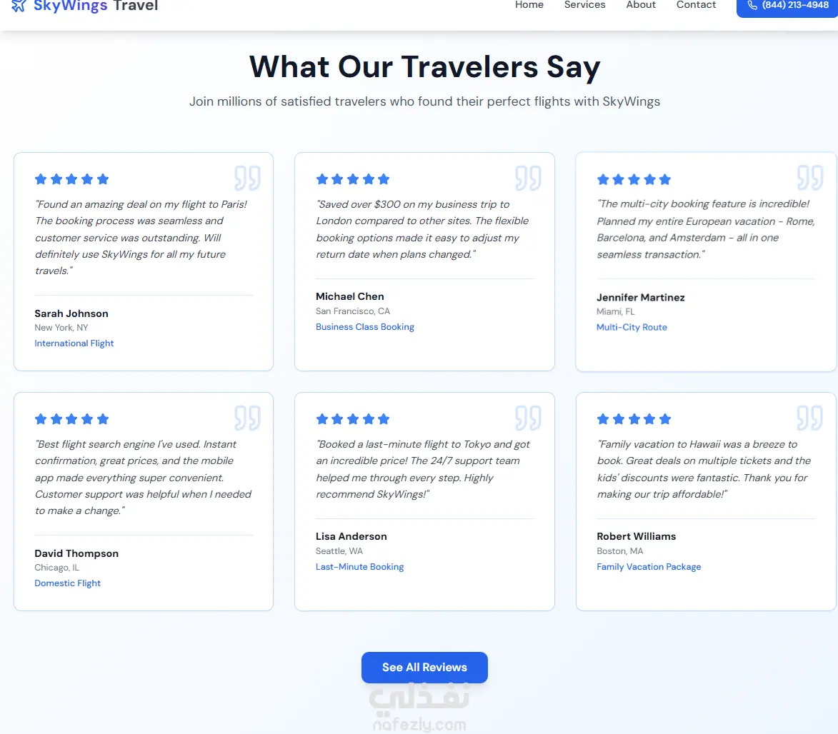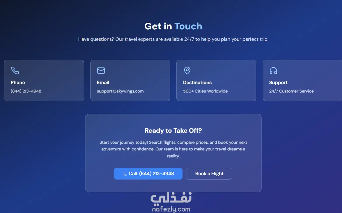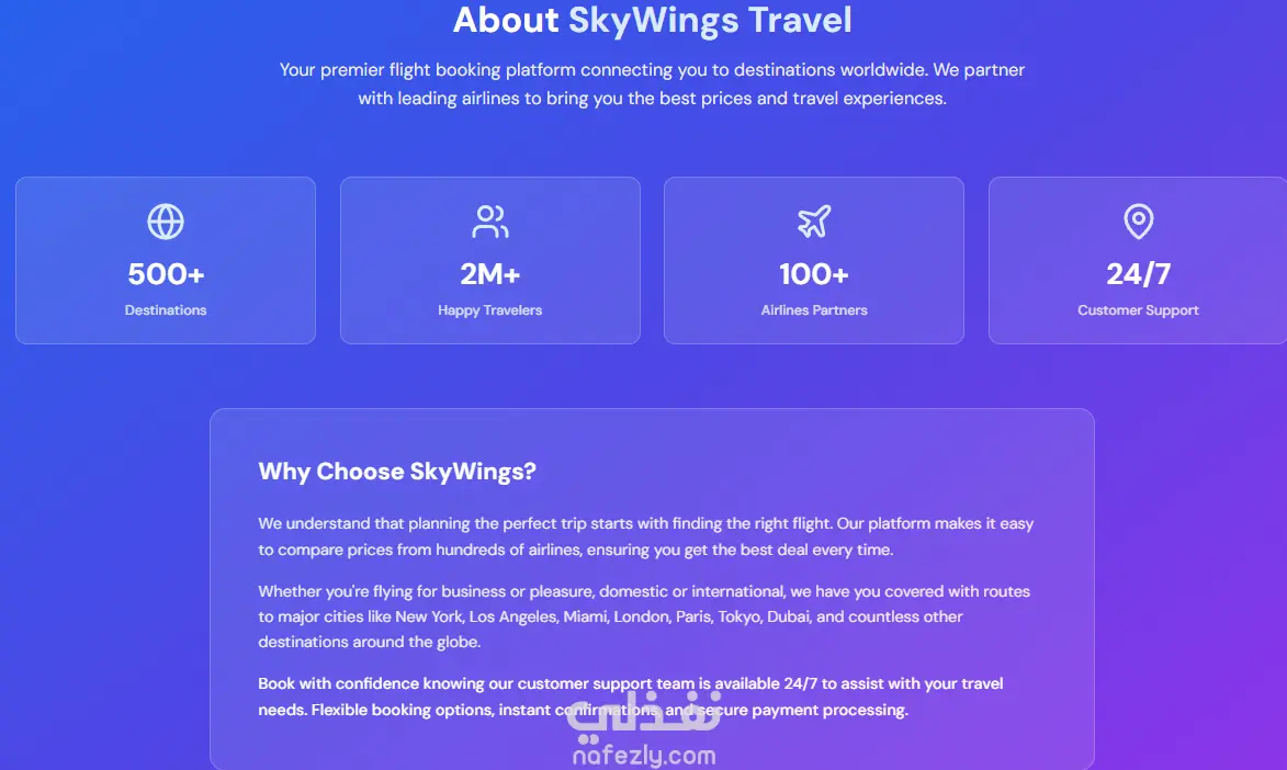 صفحة هبوط لشركة حجز طيران باستخدام ريأكت