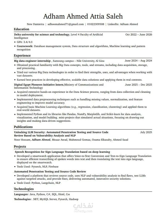 سيرة ذاتيه مصممه بشكل احترافي للمرور من اختبار ATS