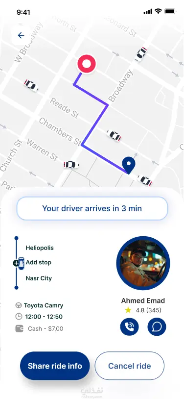 تطبيق تاكسي ذكي يوفّر طريقة سهلة وآمنة لحجز المشاوير في أي وقت ومن أي مكان. يتيح للمستخدم طلب سيارة خلال ثوانٍ، متابعة السائق على الخريطة لحظة بلحظة، والدفع بطريقة مريحة سواء نقدًا أو إلكترونيًا.