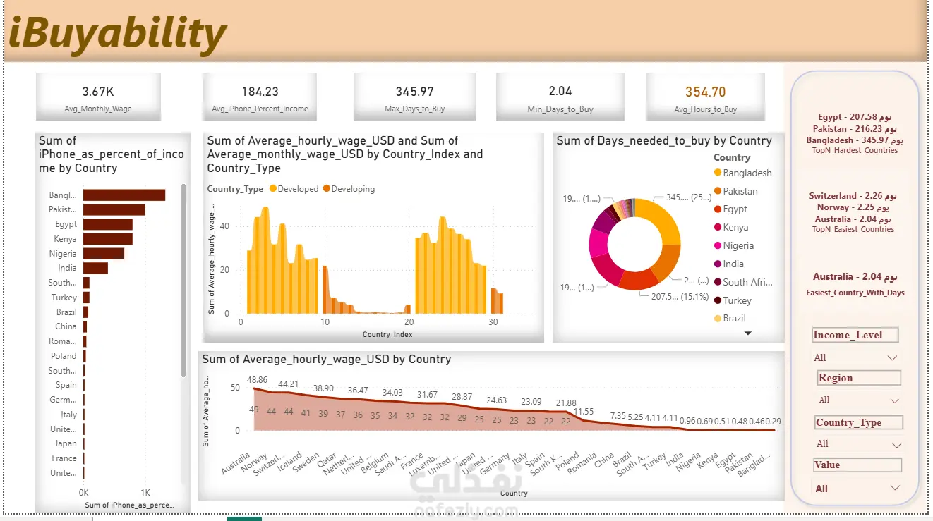 تحليل قدرة شراء هاتف iPhone عالميًا باستخدام بيانات المرتبات – iBuyability Dashboard