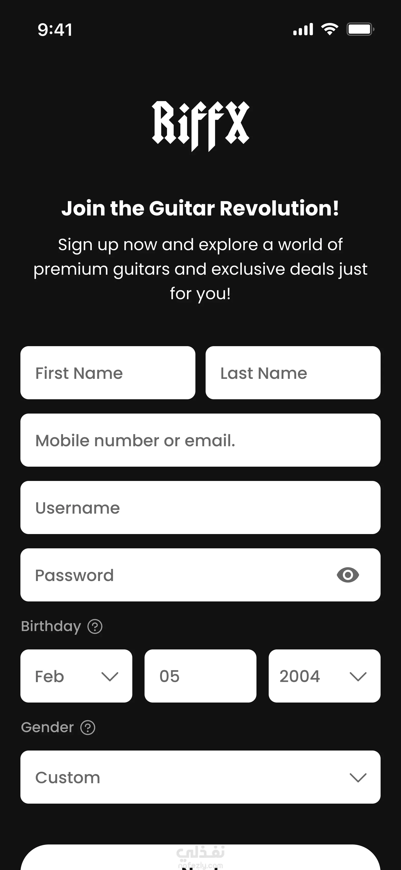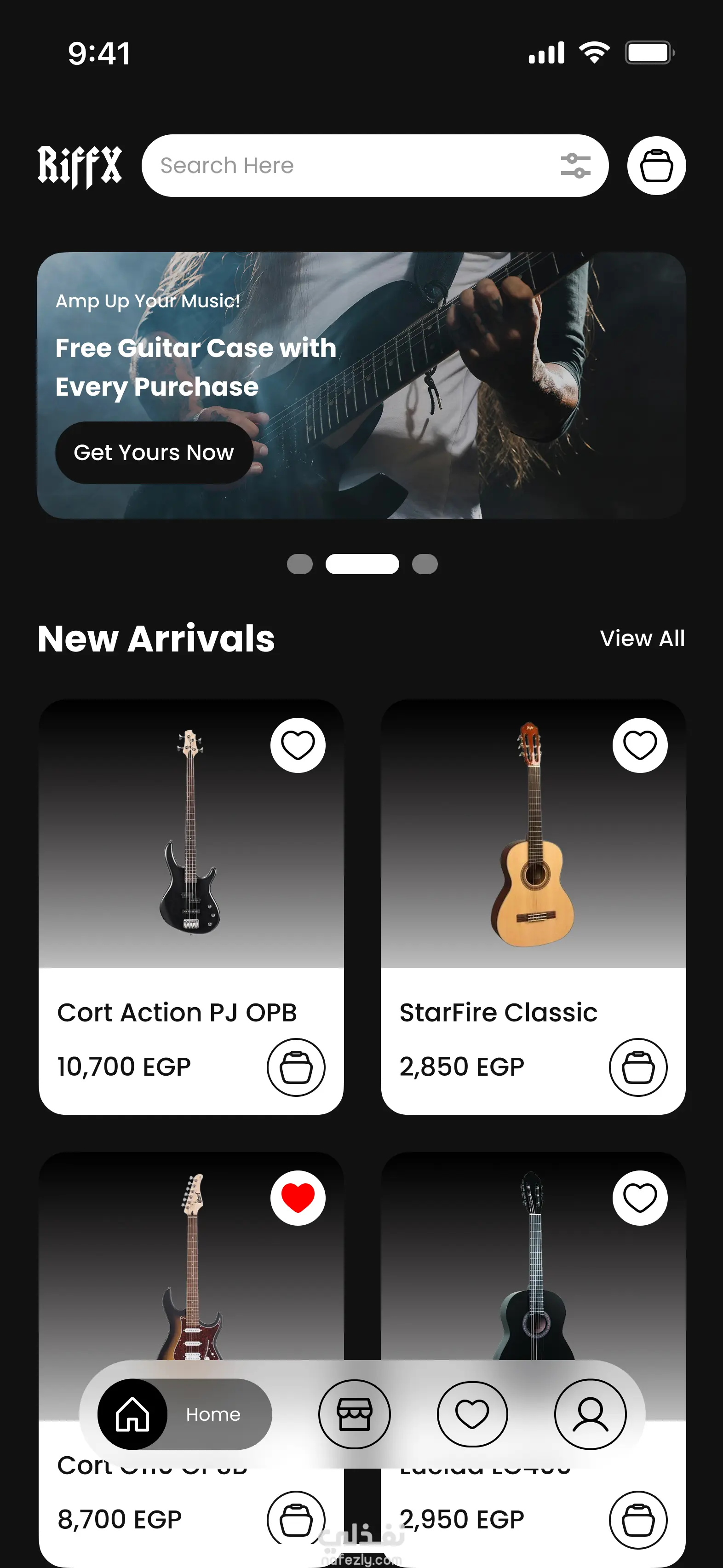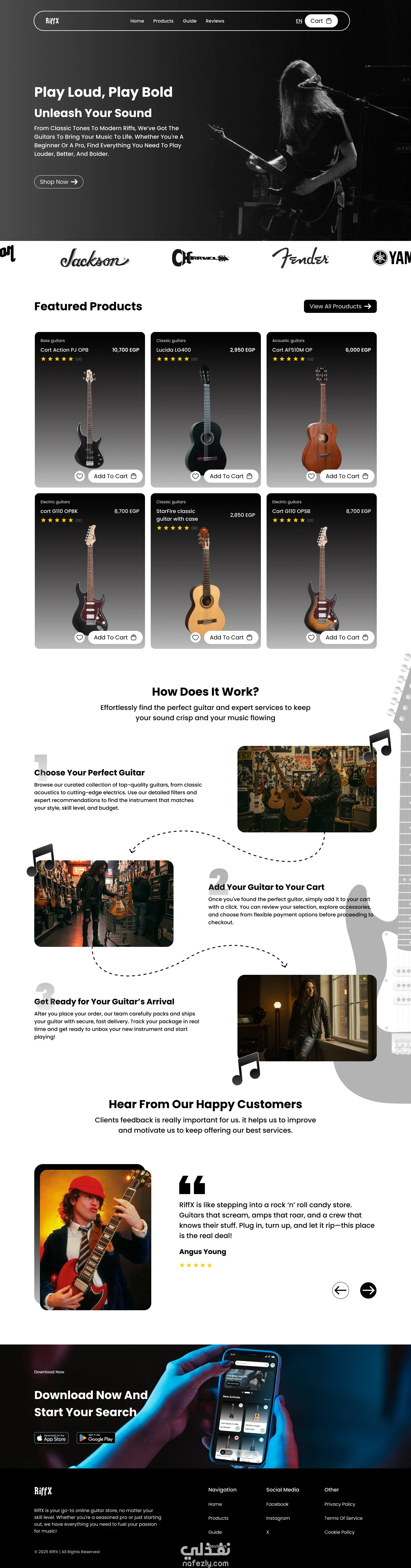RiffX هو منصة تجارة إلكترونية وتطبيق جوال لبيع الجيتارات.
