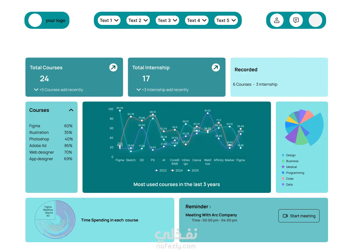 الداش بورد هي لوحة تحكم ذكية تساعد على عرض البيانات والإحصائيات بشكل واضح وسهل الفهم، مما يتيح متابعة الأداء واتخاذ القرارات بشكل أسرع وأكثر دقة. تم تصميمها بواجهة مرنة وسهلة الاستخدام لعرض التقارير، الرسوم البيانية، ومؤشرات الأداء في مكان واحد، مع إمكانية التخصيص حسب احتياجات المستخدم ونوع المشروع.