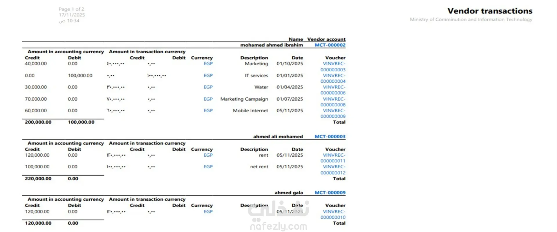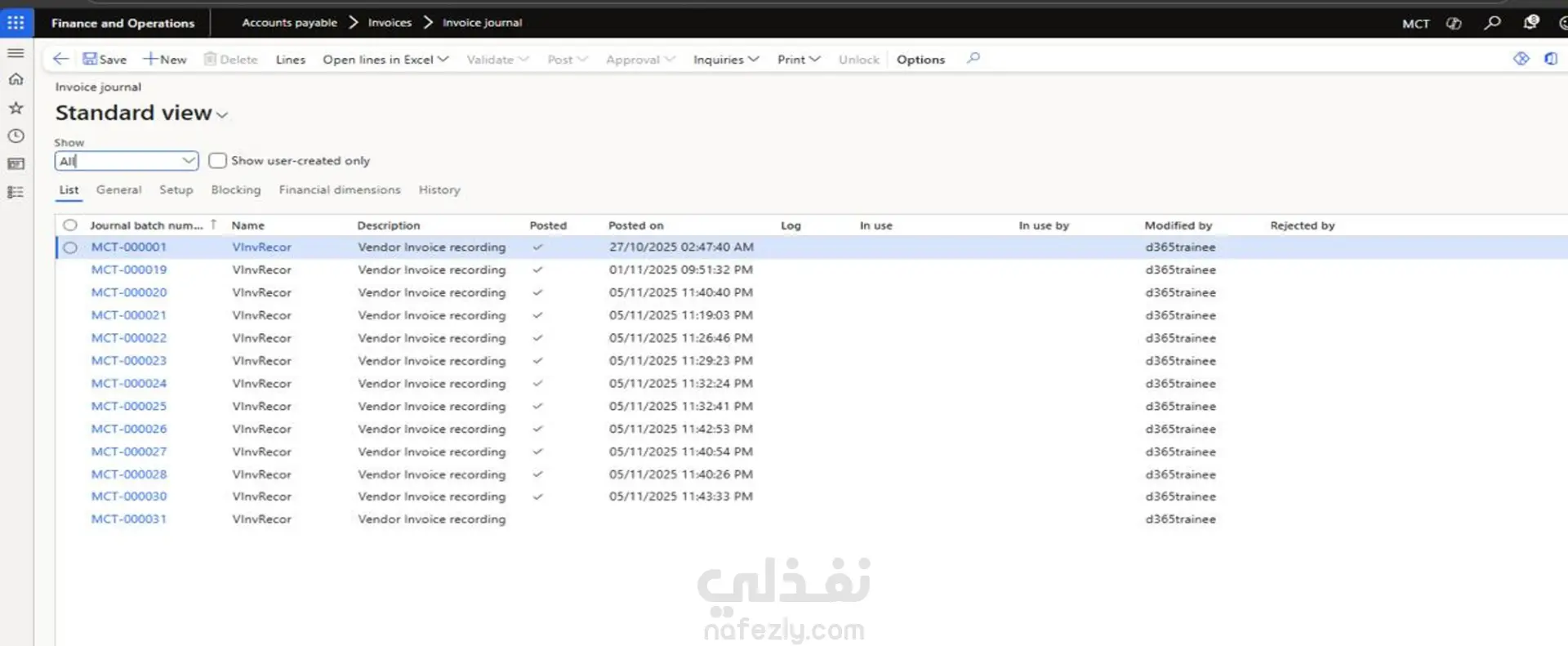 مشروع حسابات الموردين على برنامج Microsoft Dynamic 365 F&O