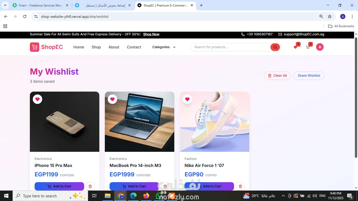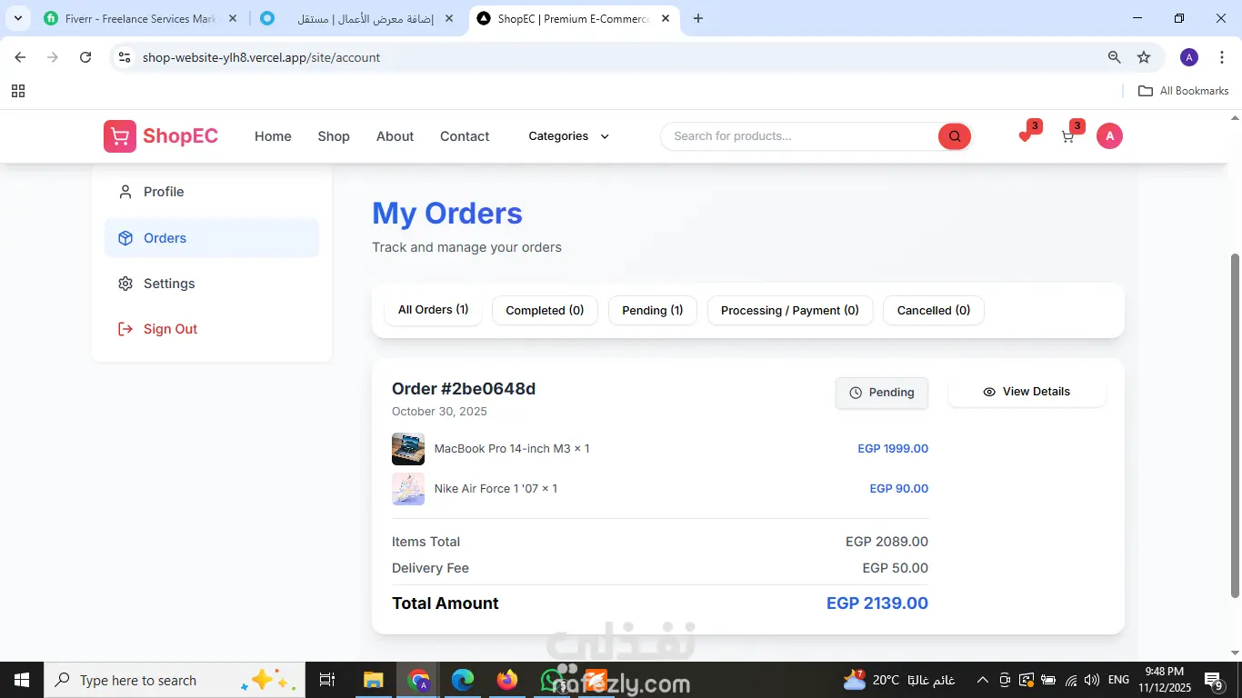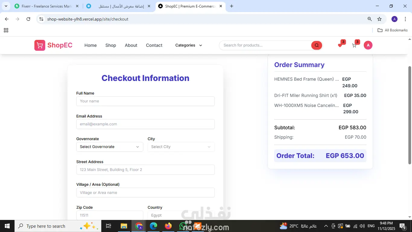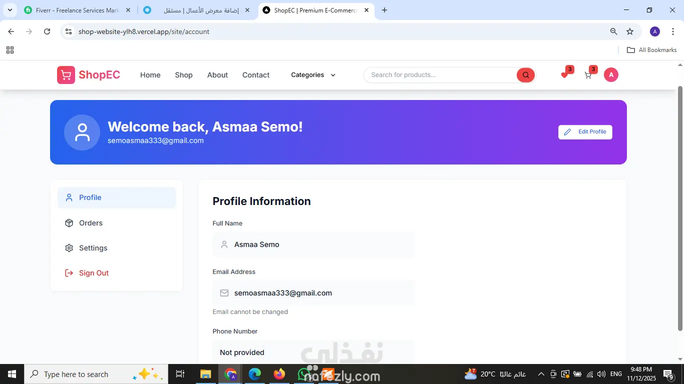 مت بتصميم وتطوير منصة تجارة إلكترونية (E-commerce) متكاملة تهدف إلى توفير تجربة تسوق سلسة وسريعة للمستخدمين. مميزات المشروع: [cite_start]* أداء عالي وسرعة فائقة: تم بناء الموقع باستخدام Next.js لضمان سرعة تحميل الصفحات وتحسين الأرشفة (SEO). [cite_start]* تصميم متجاوب (Responsive): الموقع يعمل بكفاءة على جميع الأجهزة (موبايل، تابلت، ديسكتوب) بفضل استخدام Tailwind CSS. [cite_start]* لوحة تحكم (Dashboard): يتضمن لوحة تحكم للإدارة مع تحليلات ومصادقة (Authentication). [cite_start]* ربط API: تكامل كامل مع RESTful APIs لعرض المنتجات وإدارة الطلبات. التقنيات المستخدمة: Next.js, React, TypeScript, Tailwind CSS.