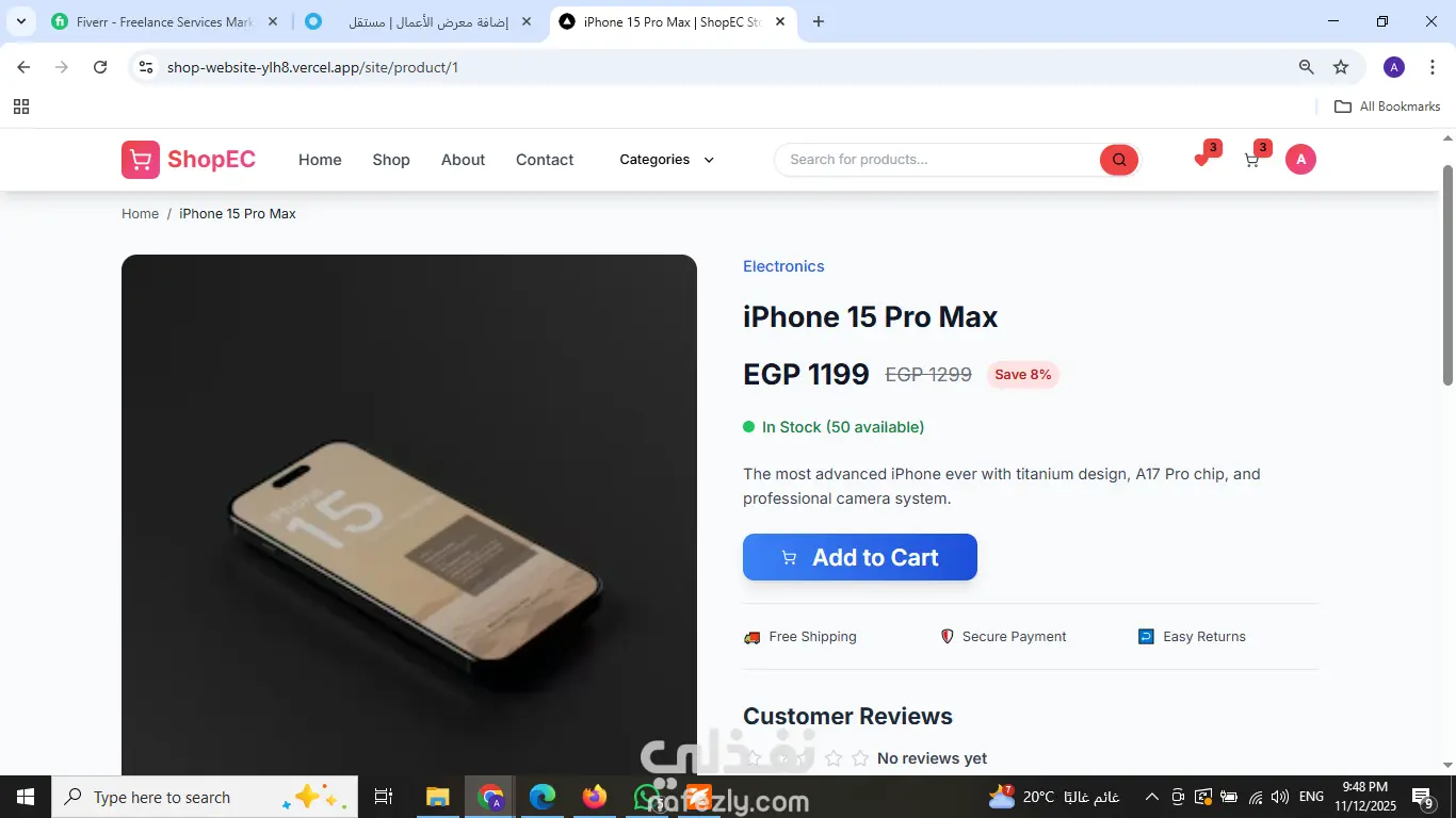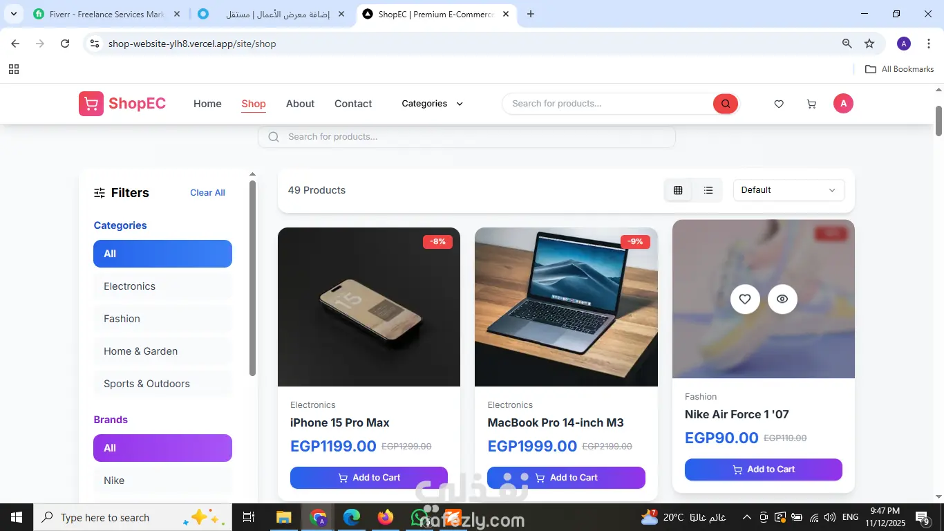 طوير متجر إلكتروني متكامل وسريع باستخدام Next.js و Tailwind CSS