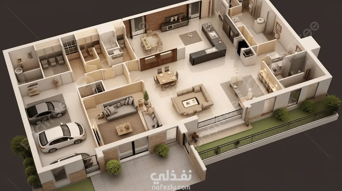 مخططات 3D,2D واقعية توضح شكل المكان النهائي.