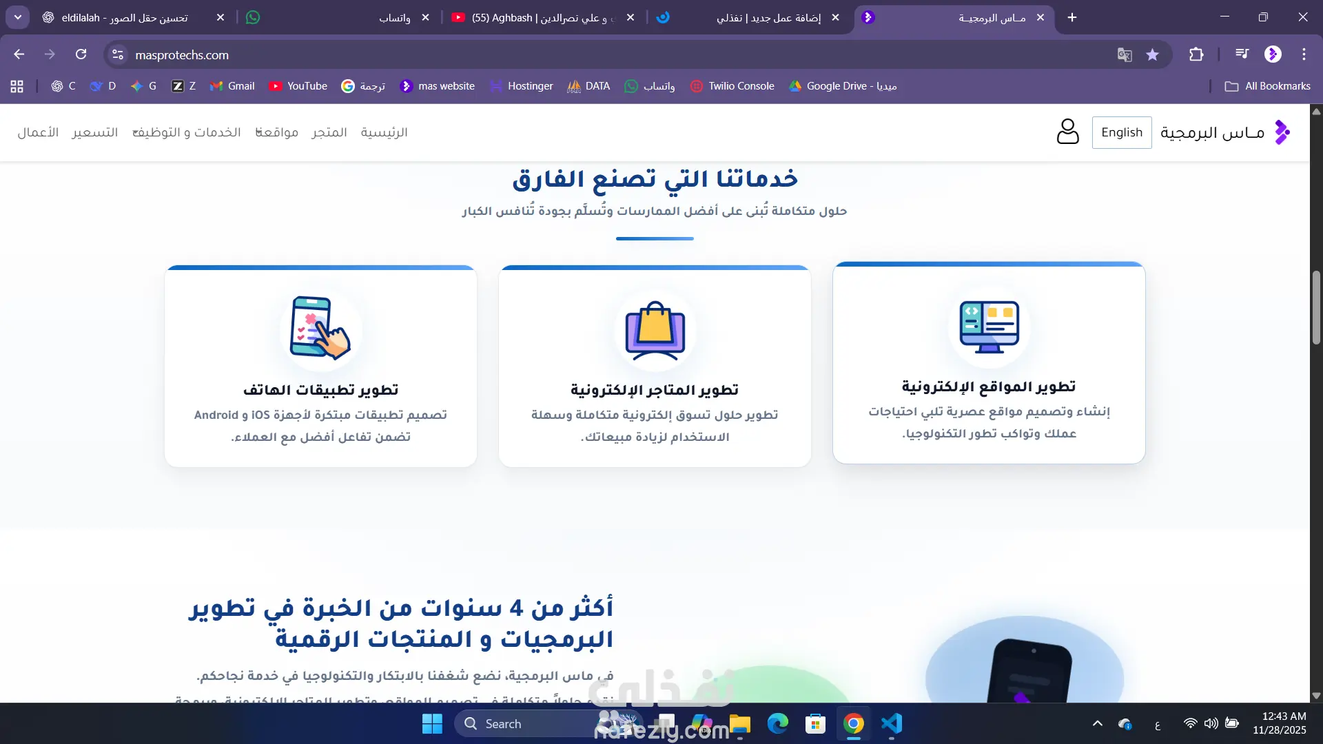 موقع الكتروني خاص بانشاء المواقع و المتاجر الالكترونية و تطبيقات الهواتف و انظمة الشركات الكبرى و المتوسطة و المحلات التجارية
