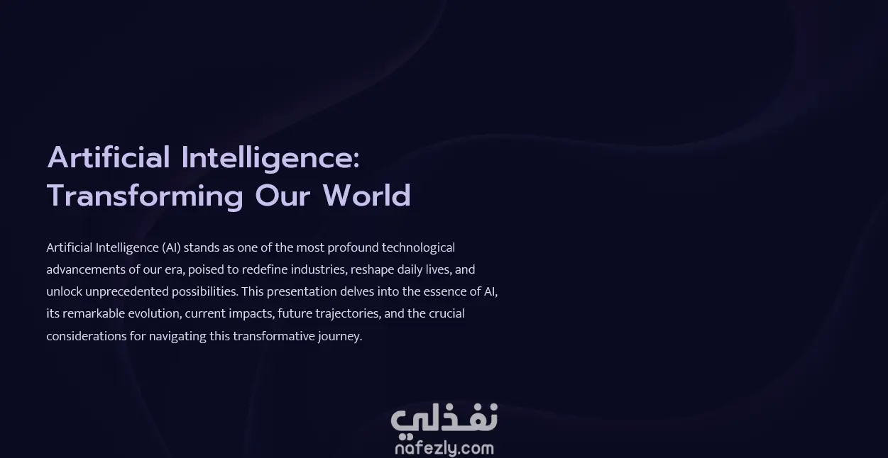 قمت بإعداد عرض تقديمي احترافي وشامل يوضح المفاهيم الأساسية والمتقدمة في مجال الذكاء الاصطناعي، بطريقة مبسّطة وسهلة الفهم، مع تصميم بصري جذاب يناسب الطلاب والمهتمين بالتقنية.