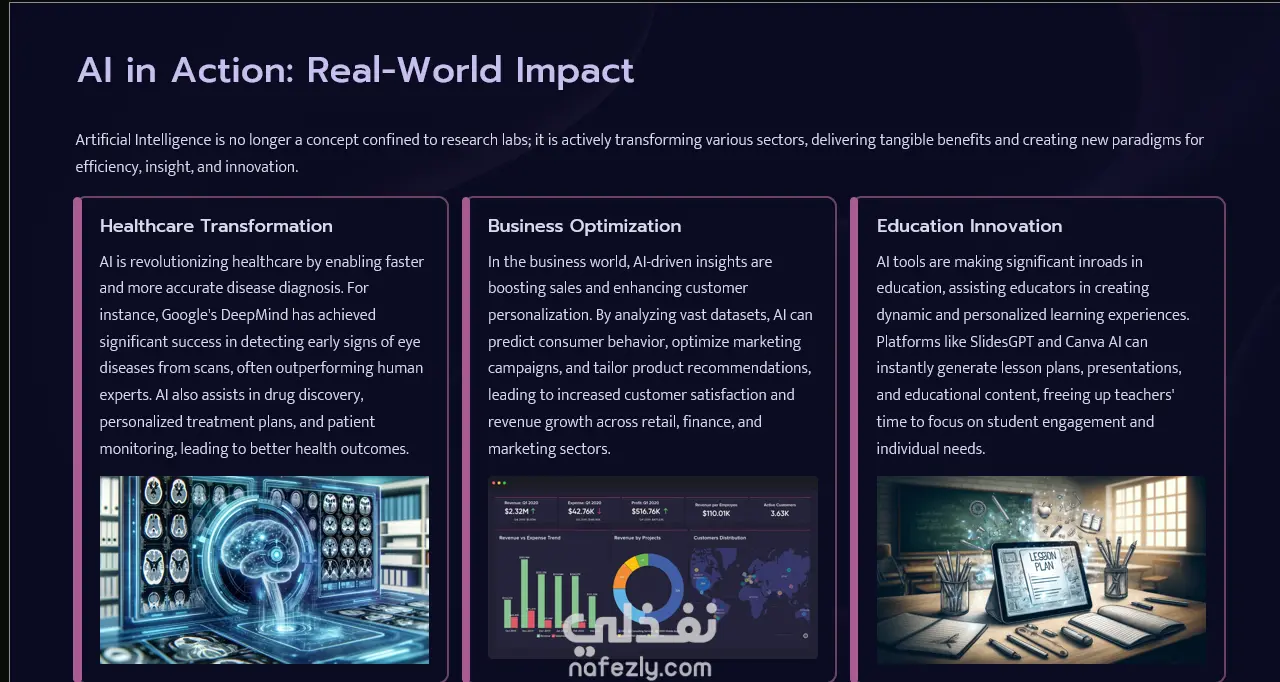 -تطبيقات الذكاء الاصطناعي في الحياة اليومية (الطب، التعليم، التجارة، الأمن السيبراني...).