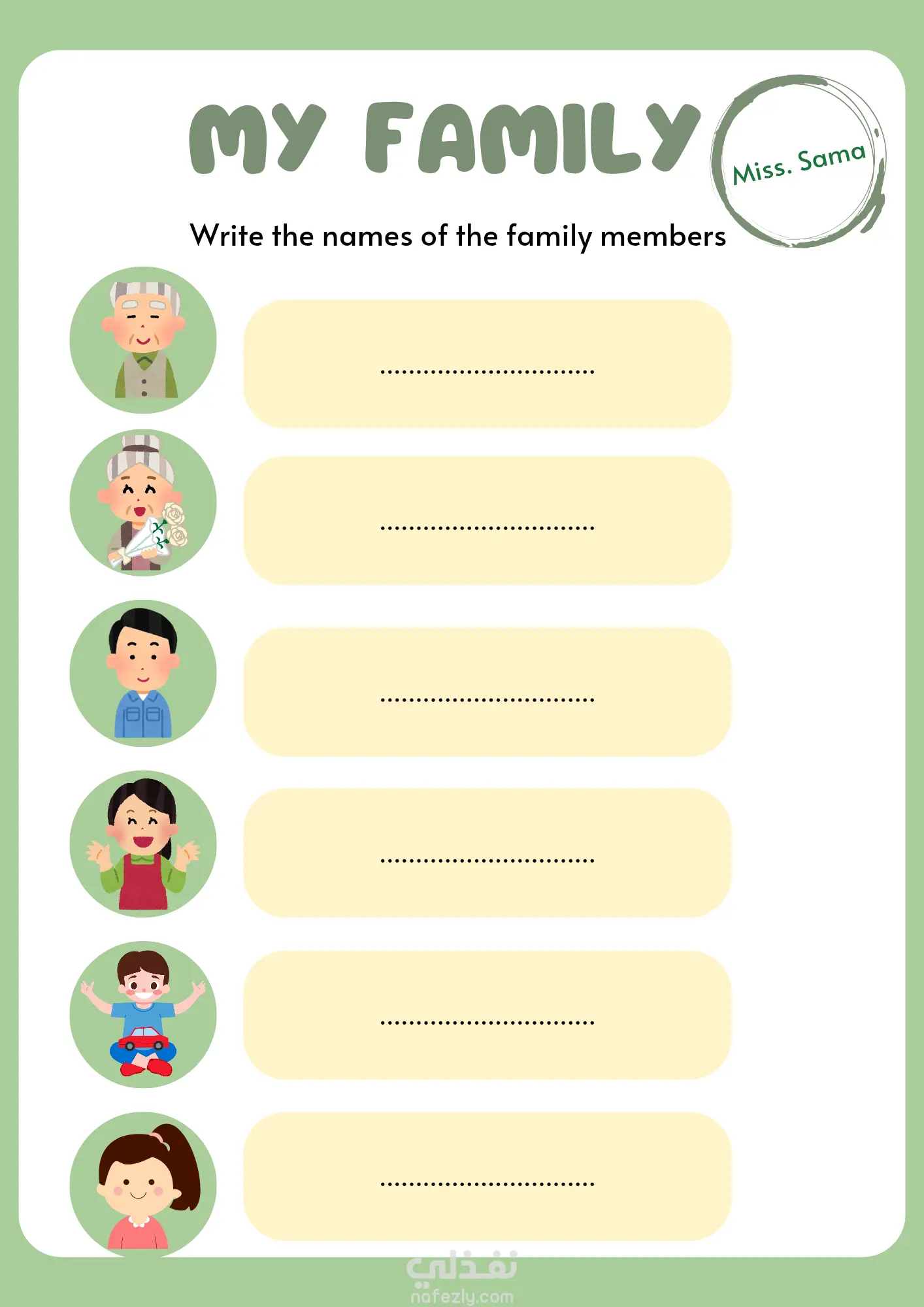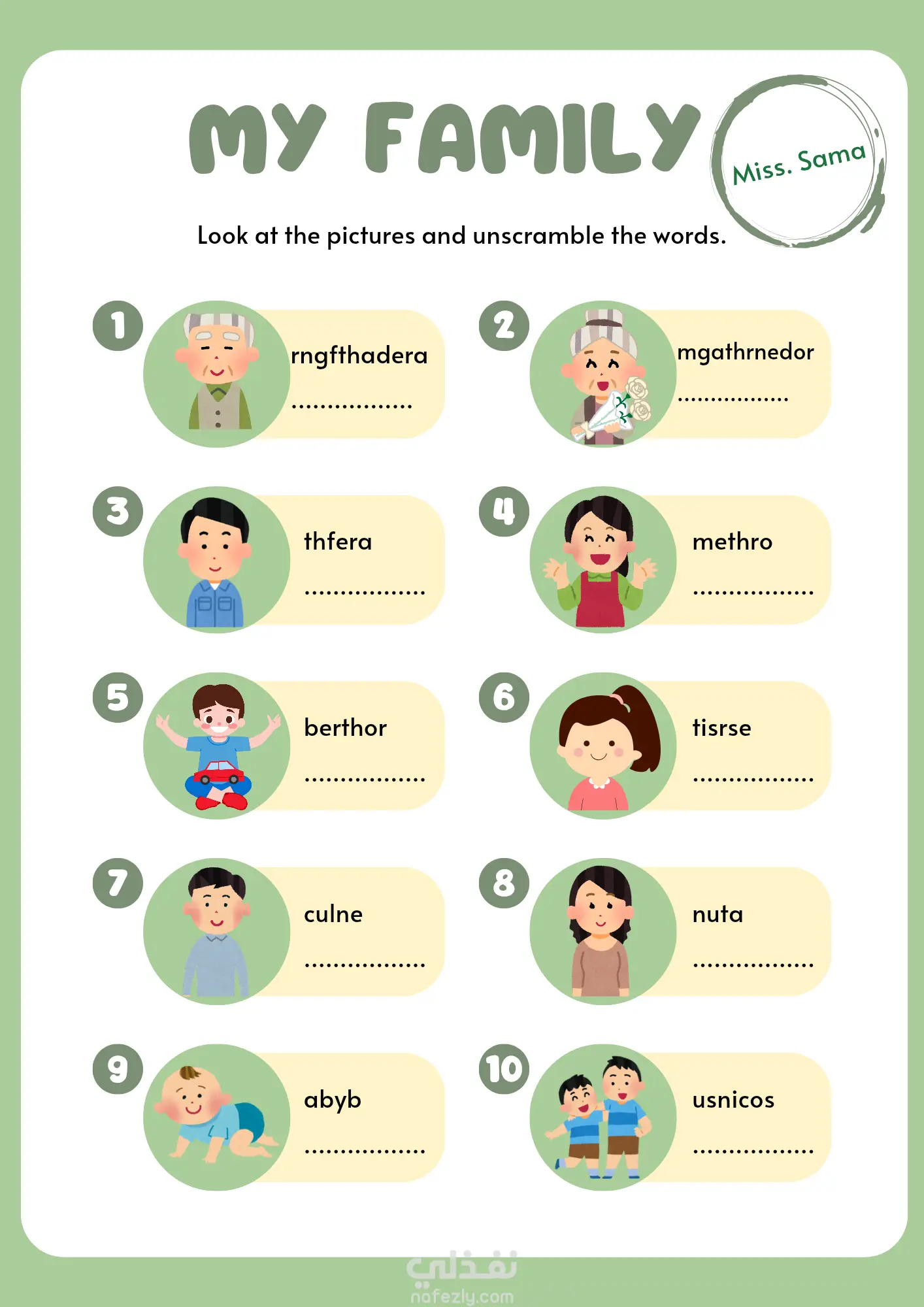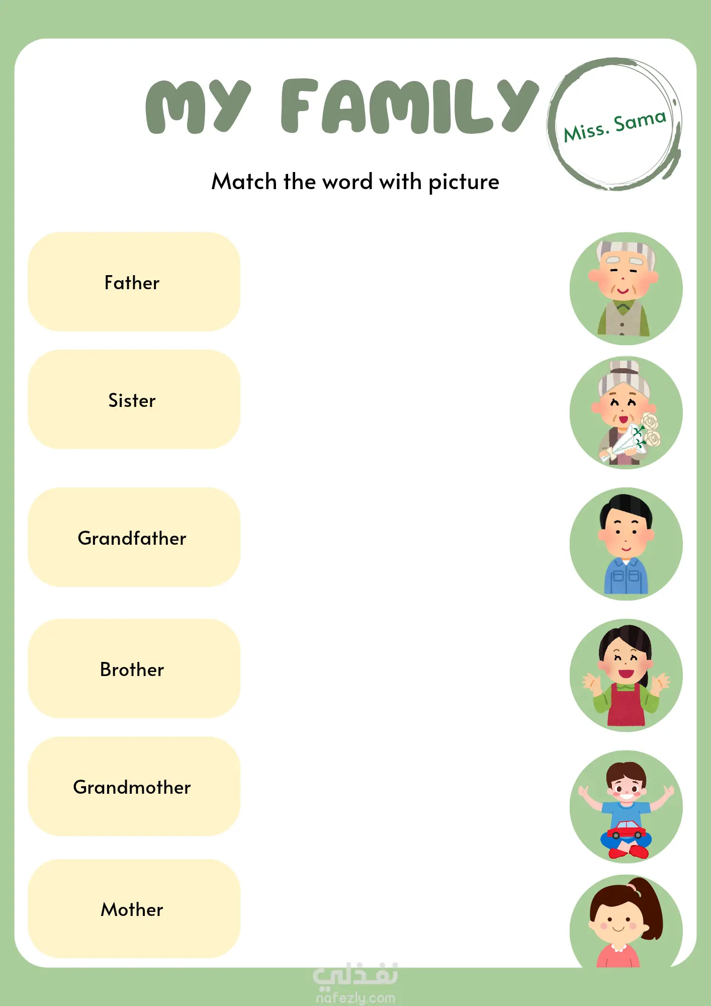 انشطه لتعليم العائلة للاطفال بطريقه سهله وجذابة Family worksheet for learning English