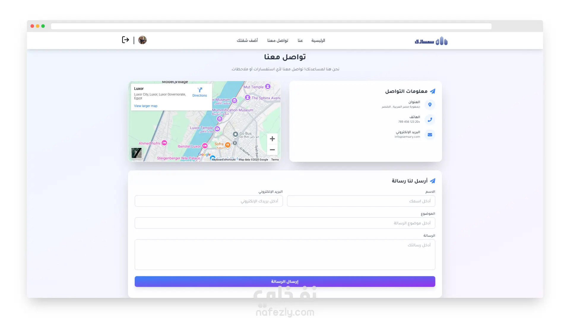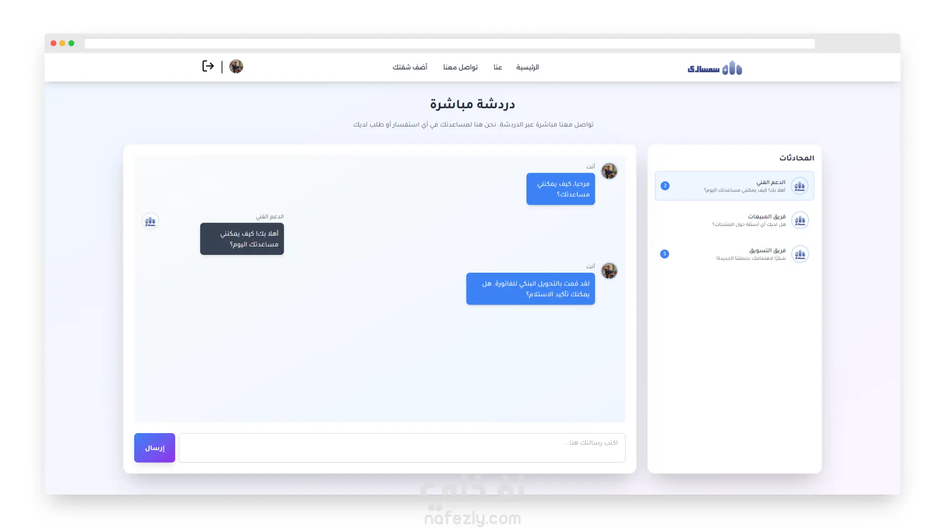 الواجهة الأمامية (Frontend): باستخدام React.js عشان الموقع يكون سريع وتفاعلي، مما يوفر تجربة مستخدم سلسة وحديثة.