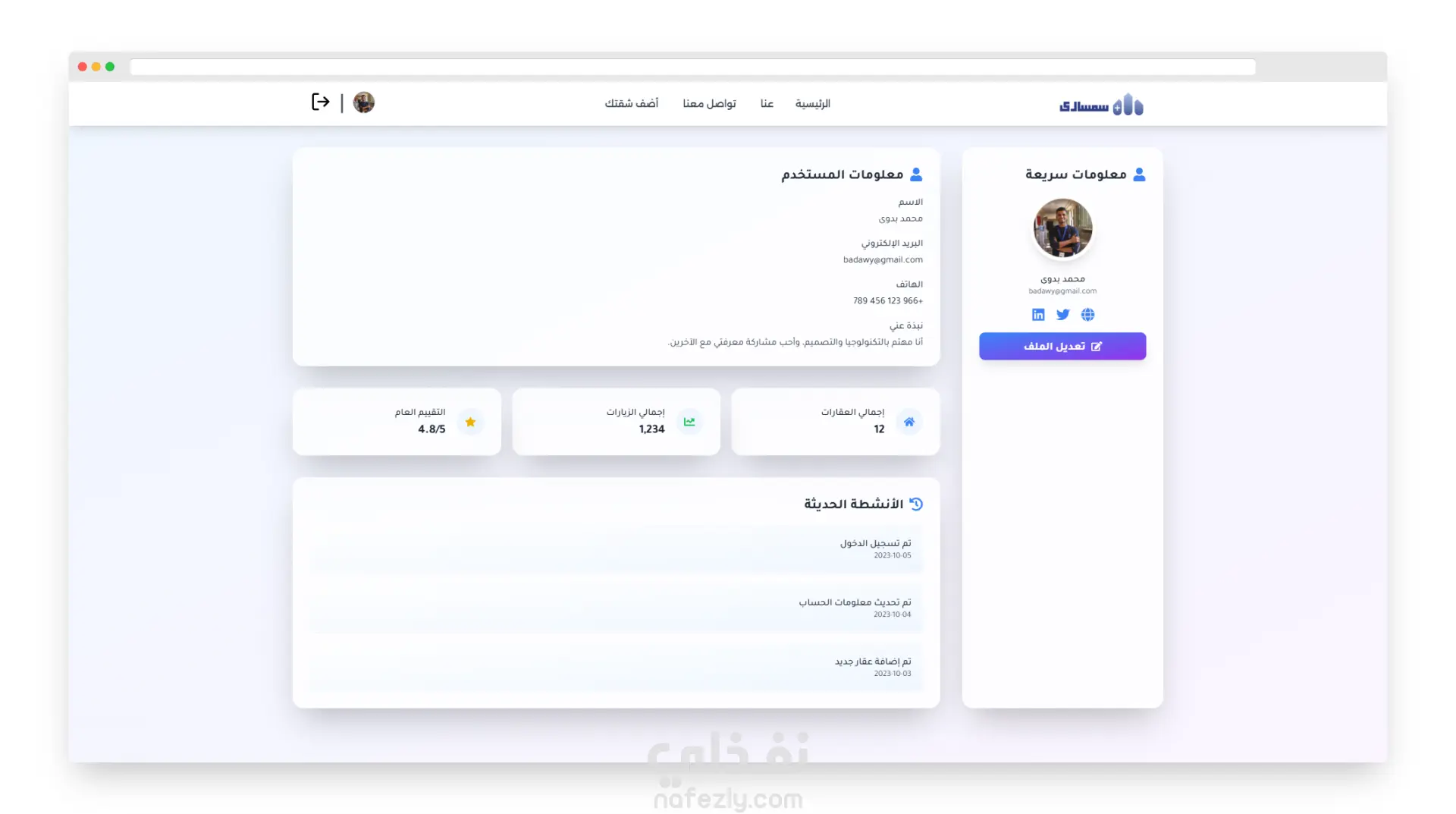 قاعدة البيانات: MongoDB لتخزين بيانات العملاء والعقارات بطريقة مرنة وفعالة.