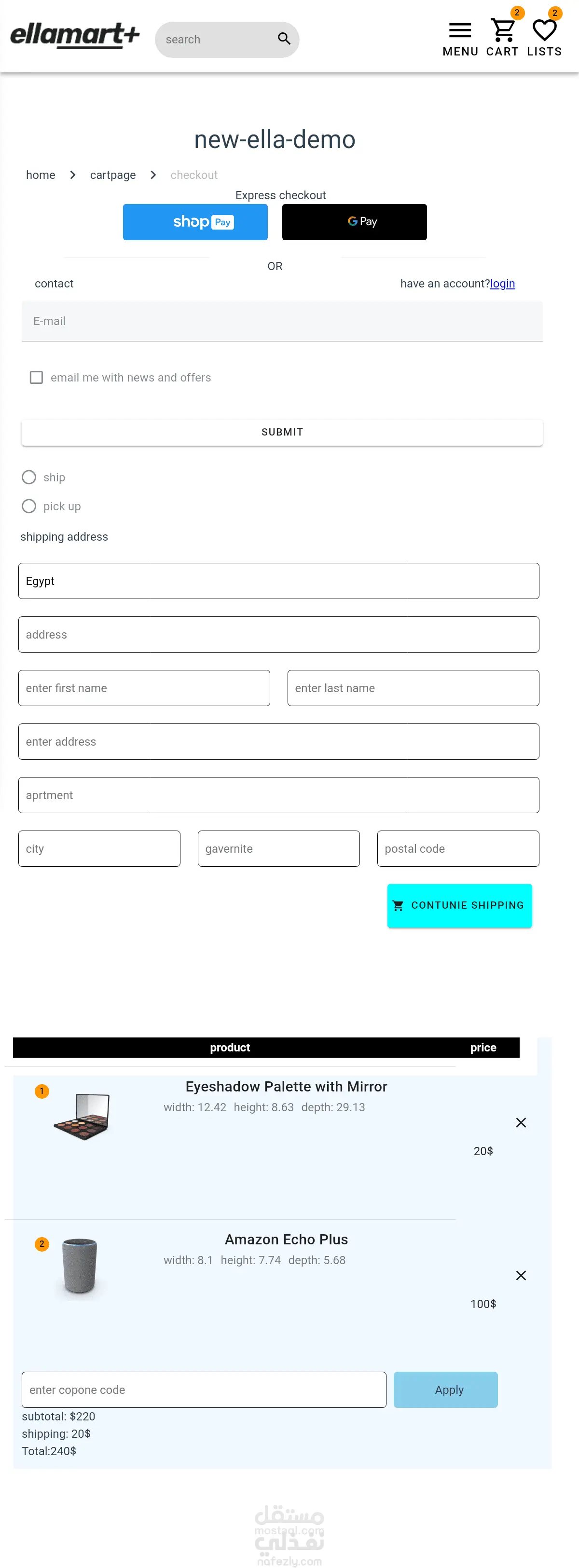 موقع متجر الكتروني لبيع المنتجات ella mart +