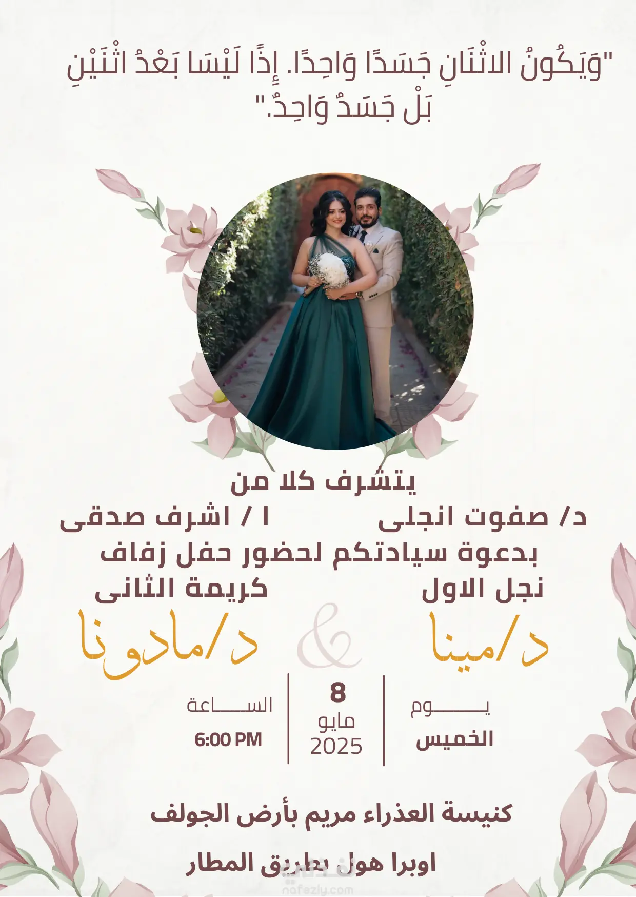 تصميم بوستر دعوة زفاف بتصميم عصرى للمنصات المختلفة Facebook WhatsApp Instagram